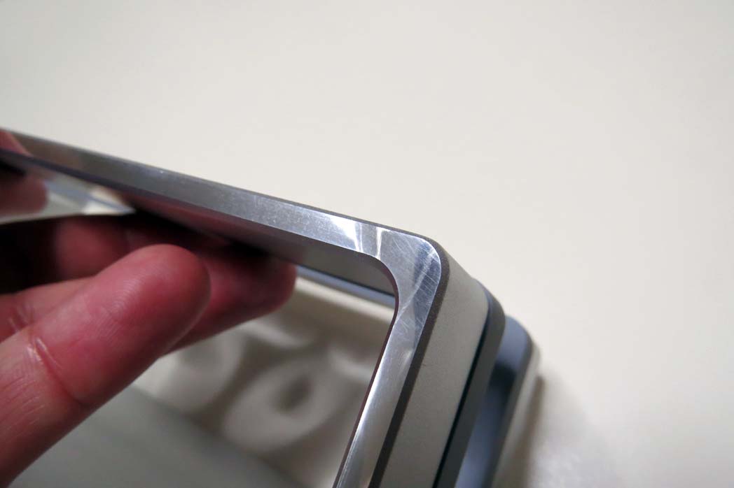 Clutch è uno stand completamente realizzato in alluminio massiccio, un supporto da tavolo dal design lineare quanto efficiente che permette di sorreggere in verticale, accogliendoli dal lato lungo, tutti i più recenti computer Apple. È compatibile con MacBook Air e MacBook Pro Retina ai quali si accosta perfettamente per stile e per colore. Il materiale è, come accennato, solido alluminio bordato in alcuni punti strategici con gomma morbida di colore grigio. La struttura è quella di un parallelepipedo, leggermente più profondo che alto e lungo 20 centimetri, ricavato per fusione. L’intera struttura è opacizzata mediante spazzolatura; la parte frontale e posteriore è lucida, grazie ad un trattamento di spazzolatura con grana finissima. Tutto il Clutch è sostanzialmente studiato per resistere ai graffi.