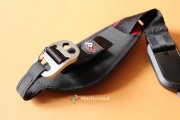 Una volta infilata la linguetta nel foro è sufficiente re-inserirla nel moschettone bloccandone l’apertura in maniera efficente: la clip che lo chiude infatti è molto dura ed è praticamente impossibile che si apra in maniera accidentale in quanto, anche solo per allentarla, abbiamo dovuto esercitare una forza significativa. L’altro lato, quello dove troviamo la clip per l’Anchor, si fissa per l’appunto attraverso quest’ultimo che si trova già agganciato alla piastra in dotazione. Quest’ultima, completamente in metallo e gomma sulla base per eliminare movimenti una volta fissata alla reflex stringendo la vite con l’apposita chiave in dotazione, è compatibile con i sistemi Arca, in pratica con la quasi totalità delle piastre di aggancio rapido di cavalletti e monopiedi attualmente disponibili in commercio. Questo significa che quando si deciderà di agganciare la reflex ad un treppiede non sarà necessario rimuovere la piastra, che potrà essere utilizzata con la propria attrezzatura.