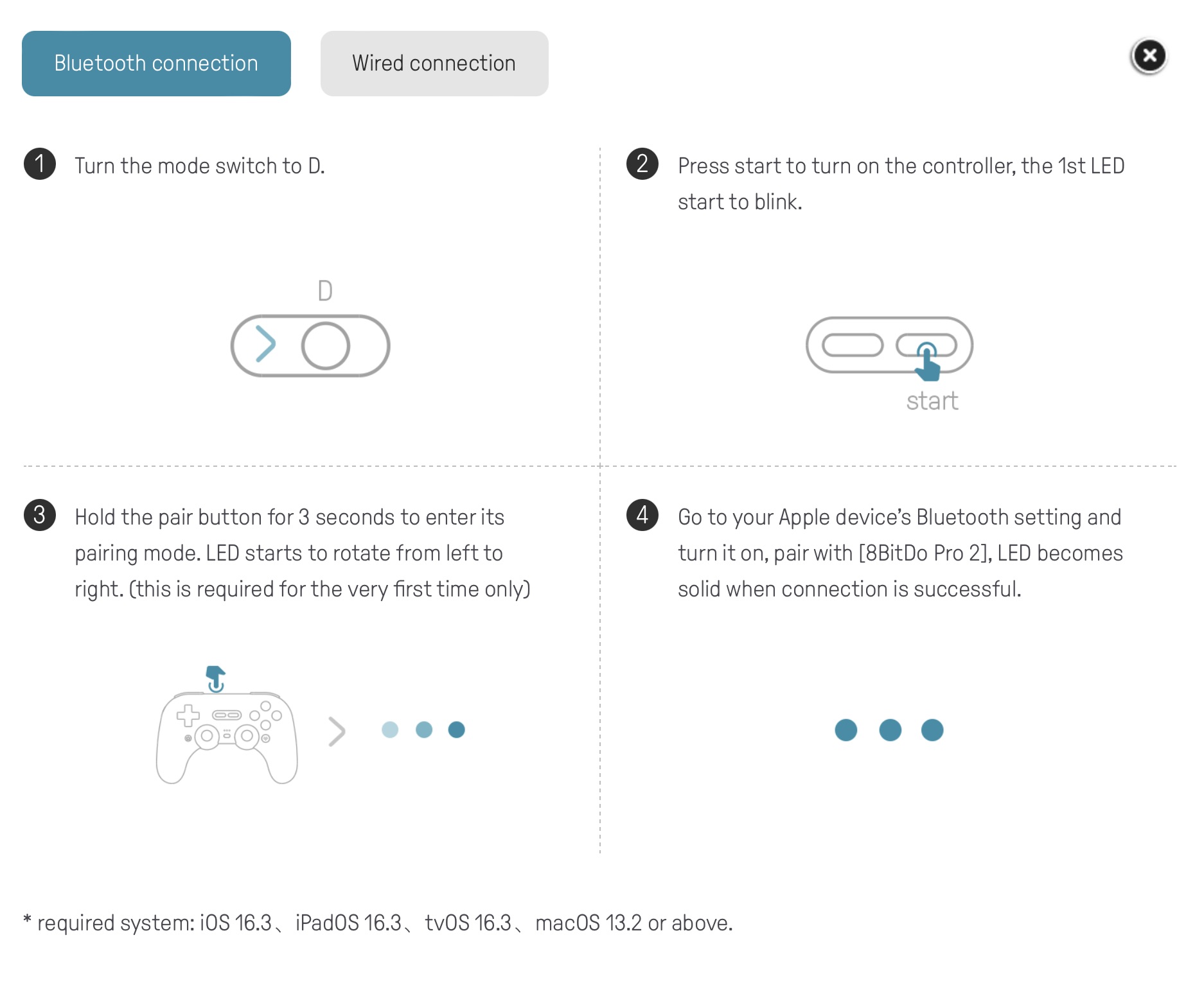 Allo stesso modo è possibile comunque abbinarlo con Windows, Steam, Rasberry Pi e Android: sarà sufficiente impostare la relativa modalità e avviare l’abbinamento.