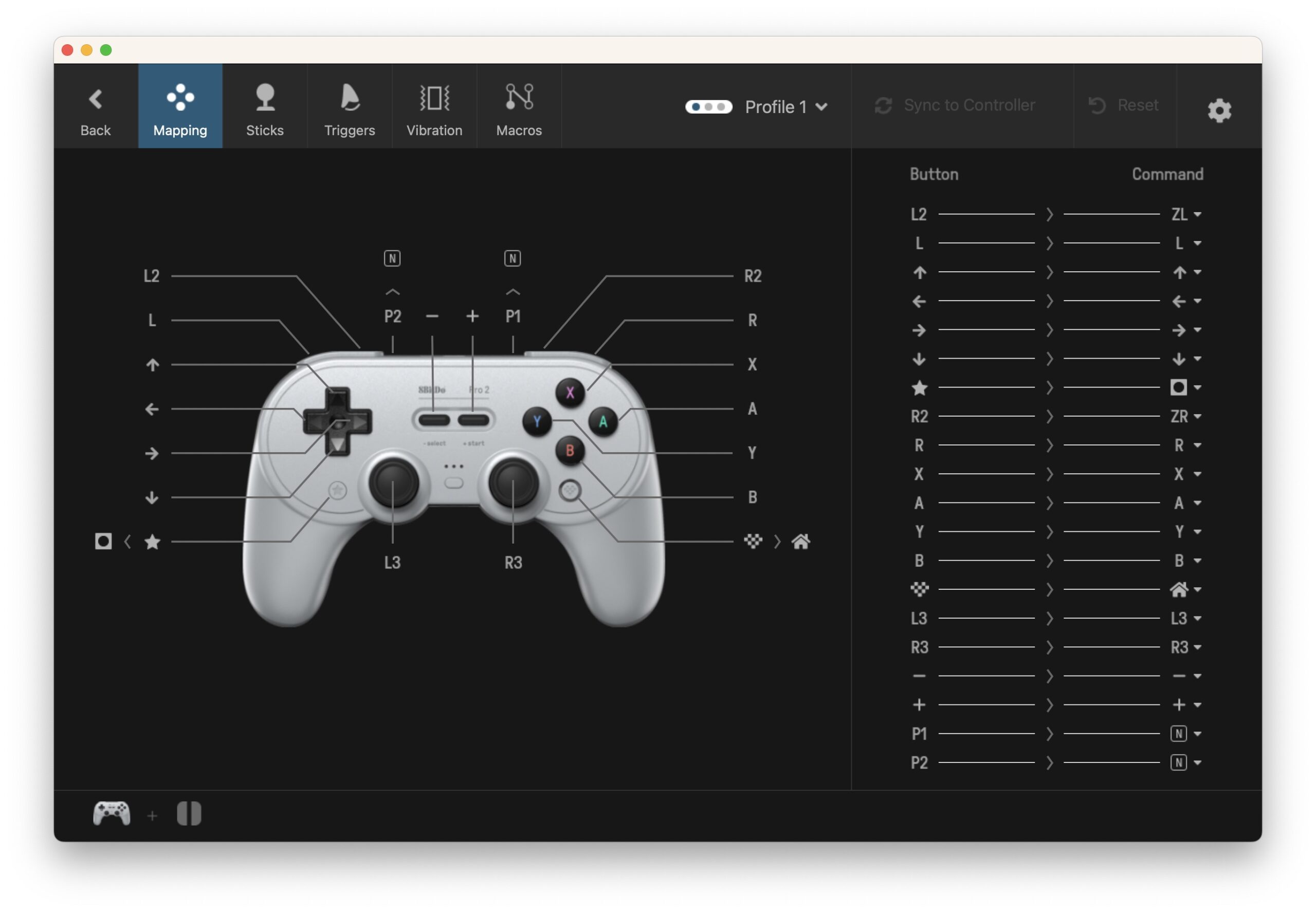 Questo consente di configurare la mappatura dei pulsanti per ogni modalità, con tre profili switchabili. Mentre la maggior parte dei giocatori, sottoscritto compreso, preferirà lasciare i pulsanti come predefiniti, è possibile mappare i pulsanti dedicati. Il software consente anche di regolare gli input analogici per impostare al meglio eventuali zone morte e per la funzione di inversione.