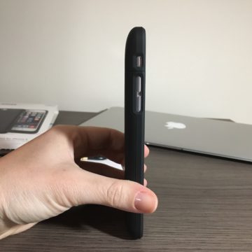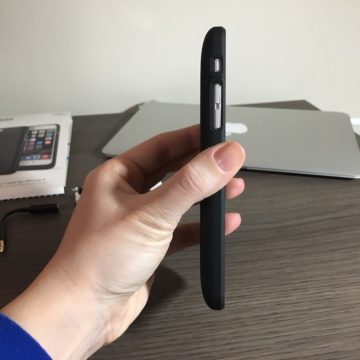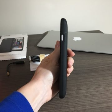 La cover batteria è interamente “foderata” di una plastica opaca, che aggiunge grip al dispositivo, che in questo modo risulterà meno scivoloso del normale. E’ piuttosto leggera, anche in considerazione della batteria aggiuntiva da 2850 mAh, e aggiunge solo 85 grammi al peso di iPhone. Lo spessore è ridotto, se si considera che stiamo parlando di una cover con batteria: solo 1,2 centimetri, contro gli 0,7 del telefono senza custodia.