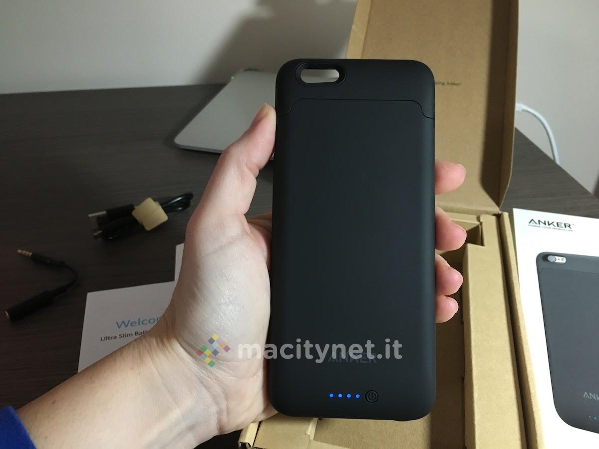 Quanto alle prestazioni, occorre dire che dei 2850mAh dichiarati sulla carta, il fattore dispersione, intrinseco e naturale per tutte le batteria, se ne riescono ad utilizzare effettivamente 2000 circa. Questo vuol dire possibilità di ricaricare una volta l’iPhone 6/6s: in questo modo, si può affermate con certezza, che la cover batteria Anker duplica la vita dello smartphone.