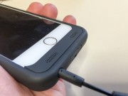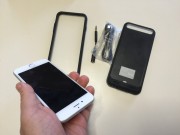 La custodia ha il classico fattore di forma di questo tipo di accessori. È costituita da una parte dorsale che ospita il tasto di accensione e i LED che ne segnalano la ricarica e contiene la batteria da 3100 mah e da una cornice che si applica sulla parte frontale del telefono, in maniera tale da incastrare al suo interno il dispositivo e dare ad esso un fattore di protezione discreto, tipico di custodie di questo tipo. Dal punto di vista dello stile la versione che ci è stata consegnata è molto austera, di color nero, ma ne esiste anche una versione bianca con cornice trasparente, per adeguarsi meglio alla tinta dell’iPhone argento o oro, con profili smussati. In ogni caso una volta “calzata” la batteria, lo stile dell’iPhone viene del tutto cancellato. La plastica è comunque di ottima qualità, caratterizzata da un “soft touch” che la rende resistente alle impronte. Ovviamente tutte le aperture necessarie per il funzionamento del telefono sono lasciate libere; solo i tasti del volume sono coperti, ma, altrettanto ovviamente, manovrabili. Per sincronizzare il telefono dovremo estrarlo dalla custodia perchè la presa Lightning non è “passante”