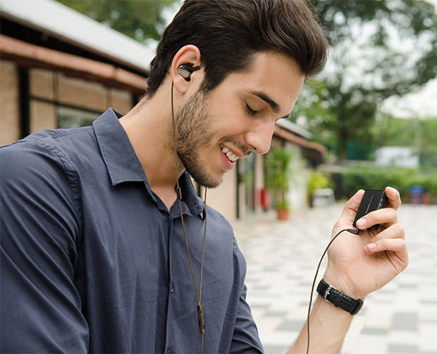 Le cuffie sono del tipo In Ear, entrano cioè, nel cavo auricolare e hanno una forma piuttosto particolare, studiata per incastrarsi nel padiglione dell’orecchio e restare saldamente in posizione. Particolare anche l’assetto che avranno una volta indossate: il cavo deve salire dal davanti e scorrere dietro l’orecchio stesso, scivolare sul cullo e poi finire davanti al nostro petto, per raggiungere il dispositivo cui vanno collegate