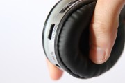I padiglioni veri e propri sono anch’essi rivestiti in ecopelle e caratterizzati da una imbottitura, onde evitare di stressare l’orecchio, mentre all’interno ciascun amplificatore è protetto soltanto da un sottilissimo strato di stoffa traforata. Tutti i controlli sono situati sul padiglione destro, dove troviamo gli ingressi miniUSB e jack, insieme al microfono, allo slot microSD ed ai tasti ON/OFF, FWD/Vol+, BWD/Vol-, EQ/FM e quello per rispondere alle telefonate in entrata o ripetere l’ultima chiamata effettuata. Ogni padiglione è caratterizzato da un sistema che lo rende mobile sia verticalmente che orizzontalmente.