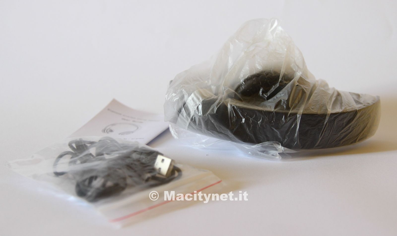 Che siamo di fronte ad un prodotto studiato per arrivare al più grande pubblico possibile, si evince fin dalla scatola, in comune cartone dove all’interno troviamo le cuffie avvolte da una semplice busta in plastica. Insieme alle Douself, nella confezione è presente il cavo miniUSB (da non confondere con il più comune microUSB) per la ricarica, il manuale d’istruzioni in inglese ed un cavo jack-jack da 3,5 millimetri per utilizzarle anche quando la batteria integrata è scarica.