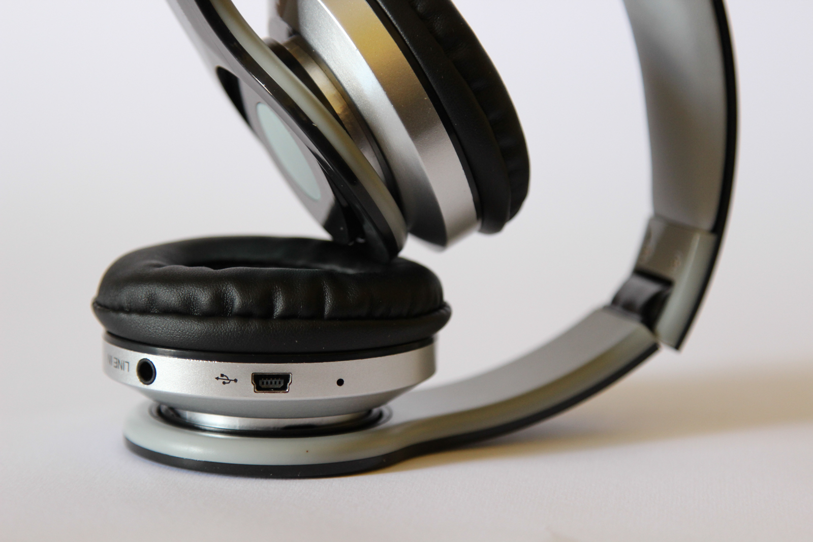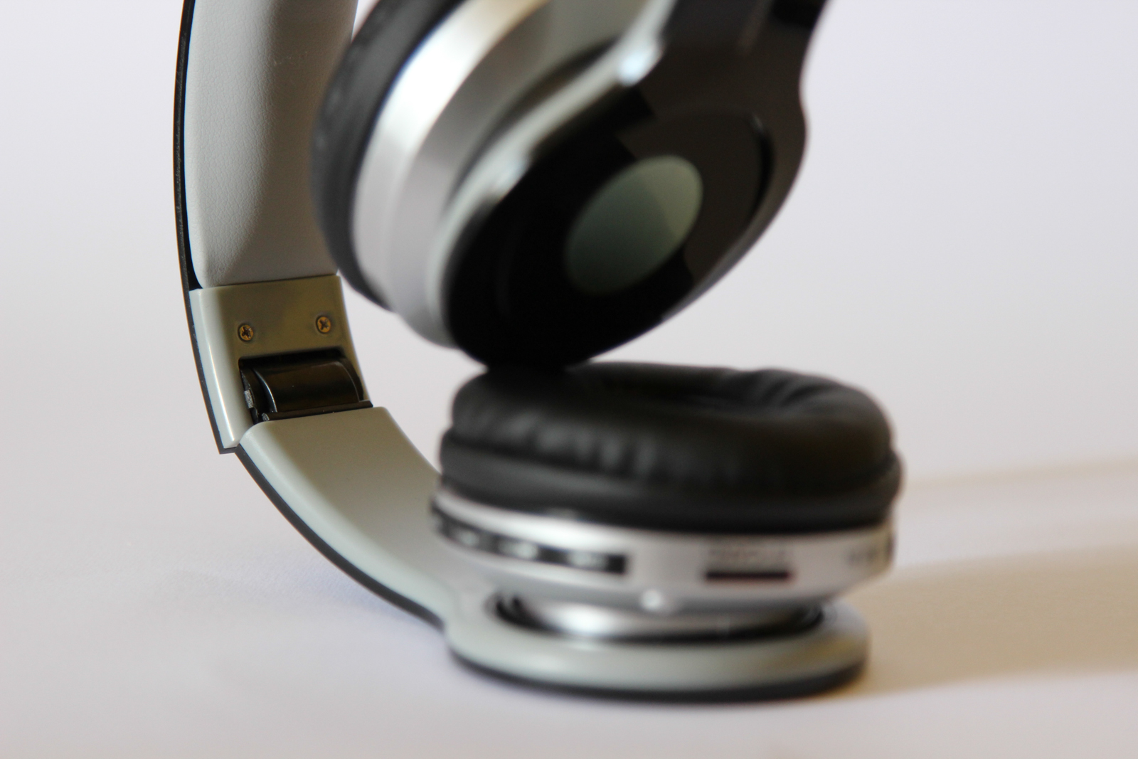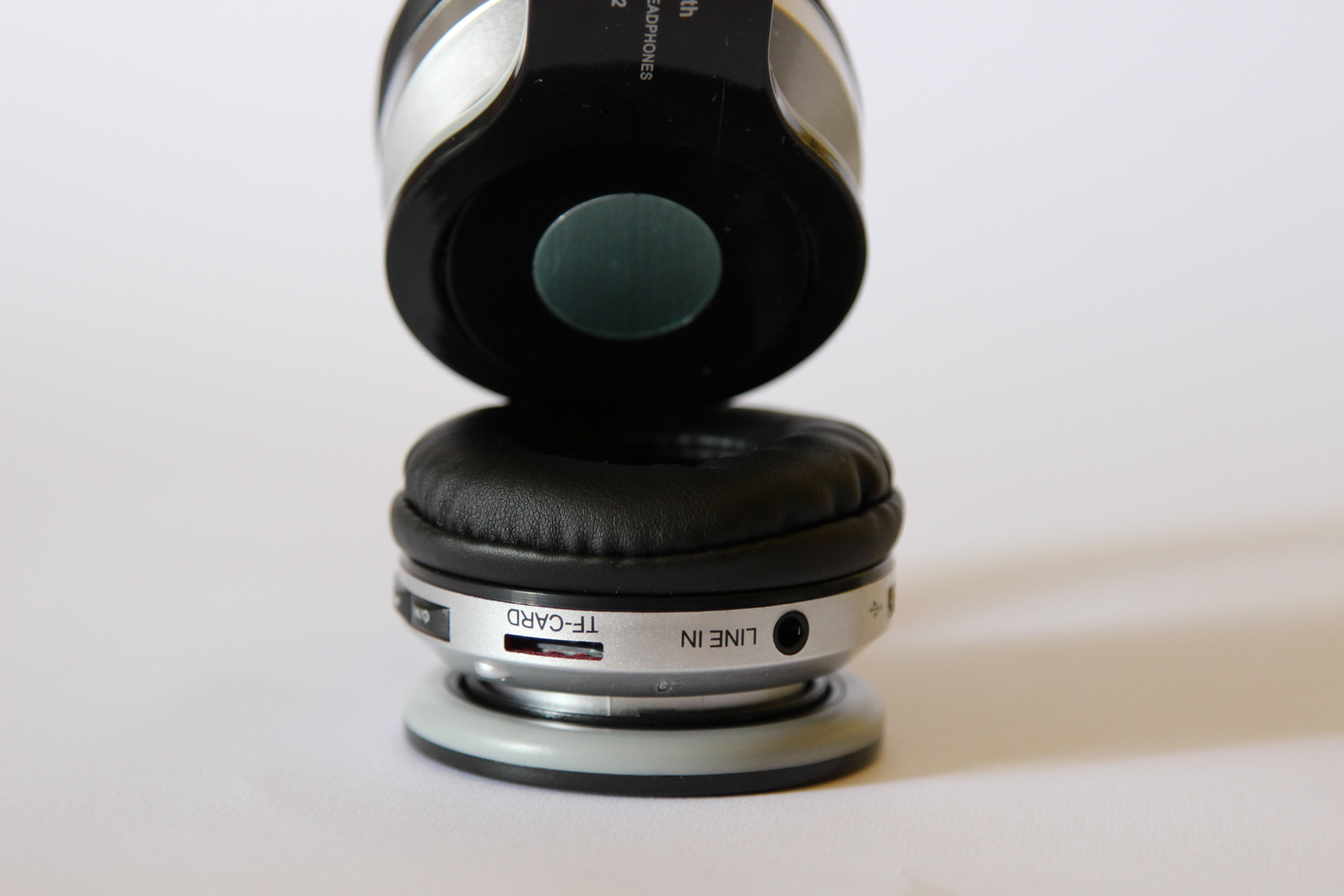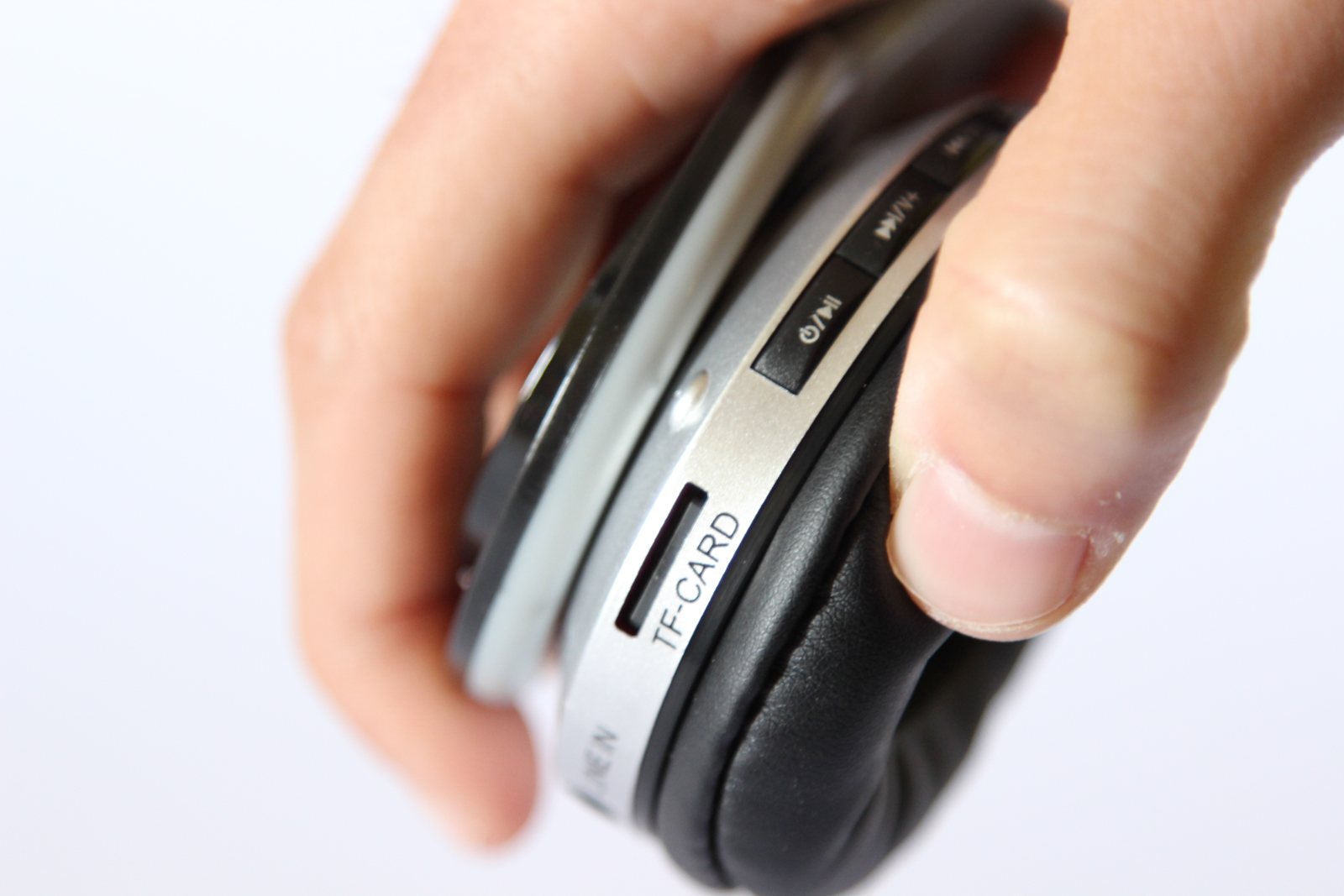 I padiglioni veri e propri sono anch’essi rivestiti in ecopelle e caratterizzati da una imbottitura, onde evitare di stressare l’orecchio, mentre all’interno ciascun amplificatore è protetto soltanto da un sottilissimo strato di stoffa traforata. Tutti i controlli sono situati sul padiglione destro, dove troviamo gli ingressi miniUSB e jack, insieme al microfono, allo slot microSD ed ai tasti ON/OFF, FWD/Vol+, BWD/Vol-, EQ/FM e quello per rispondere alle telefonate in entrata o ripetere l’ultima chiamata effettuata. Ogni padiglione è caratterizzato da un sistema che lo rende mobile sia verticalmente che orizzontalmente.
