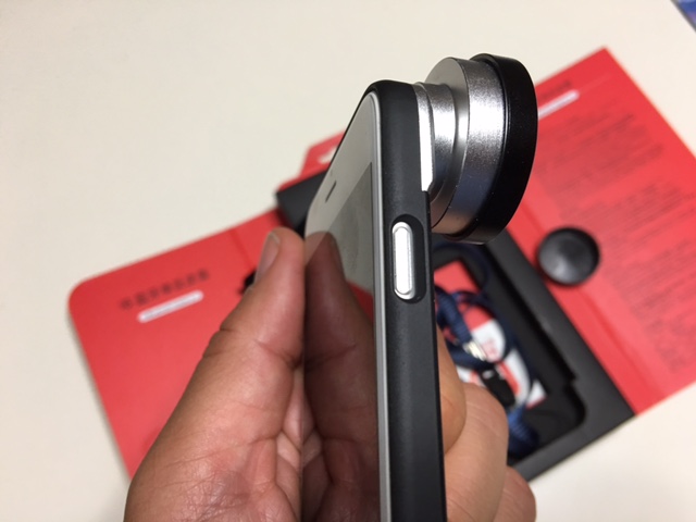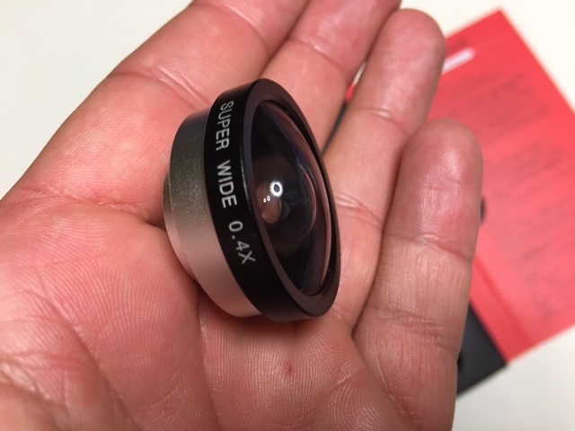 La custodia-lente si distingue dalla concorrenza proprio per essere una custodia completa, simile a tante altre, fatto salvo per la base un pò più spessa, capace però di montare una lente aggiuntiva che è una via di mezzo tra un fisheye e una lente grandangolare, una superwide secondo il produttore; il “demoltiplicatore” è 0,4X, il che significa una focale corrispondente a 11 millimetri, visto che l’equivalente focale della lente dell’iPhone 6 è un 28mm.