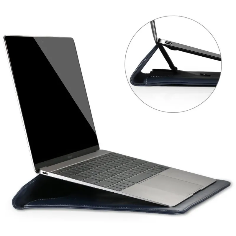 Abbiamo definito “busta” la custodia, ma in realtà va detto fin da subito che fa qualche cosa di più che semplicemente proteggere il Mac. È infatti un “due in uno”, custodia e supporto. Una volta estratto dal suo interno il computer, è possibile sfruttarla come stand per sorreggere il Mac (o un qualunque altro laptop delle stese dimensioni e peso) per scrivere. Vediamo come svolge tutti e due i compiti