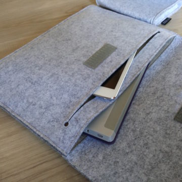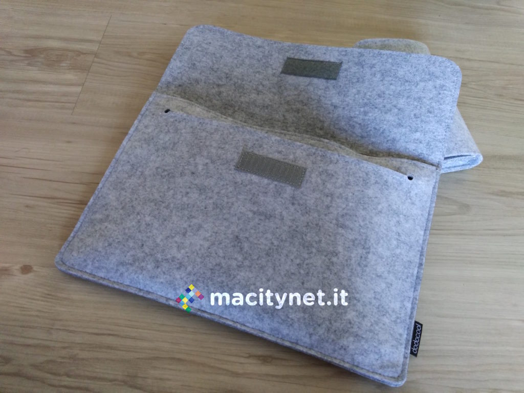 Mentre la sleeve principale si chiude con un tradizionale strap, comunque di buona fattura, dato che nelle settimane da noi testate è rimasto pressoché intatto, la pochette più piccola gode di un elastico stile carpetta, probabilmente più duraturo nel tempo, ma meno pratico da aprire e chiudere. Nel complesso, entrambe le bustine godono di buone finiture e risultano robuste, resistenti e certamente in grado di proteggere i dispositivi inseriti, anche da piccoli urti. Ciò che probabilmente stona, ma solo per il caldo periodo in cui ci troviamo, è il materiale utilizzato, che meglio si presta ad un utilizzo invernale. Basta prendere in mano la sleeve per notare una certa pesantezza nella stoffa utilizzata, che probabilmente risulterà più confortevole al tatto con un clima più freddo.