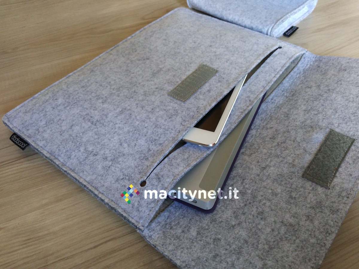 Macitynet testa la sleeve Macbook, che permette di trasportare al sicuro il proprio portatile della Mela, in grado di contenere anche iPad o altre periferiche, con due tasche sul retro per due eventuali smartphone. Incluso nel bundle proposto su Amazon anche una piccola pochette per mouse o altri piccoli accessori.