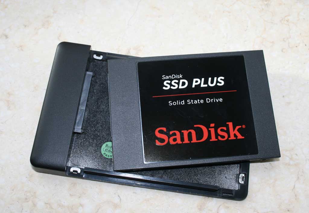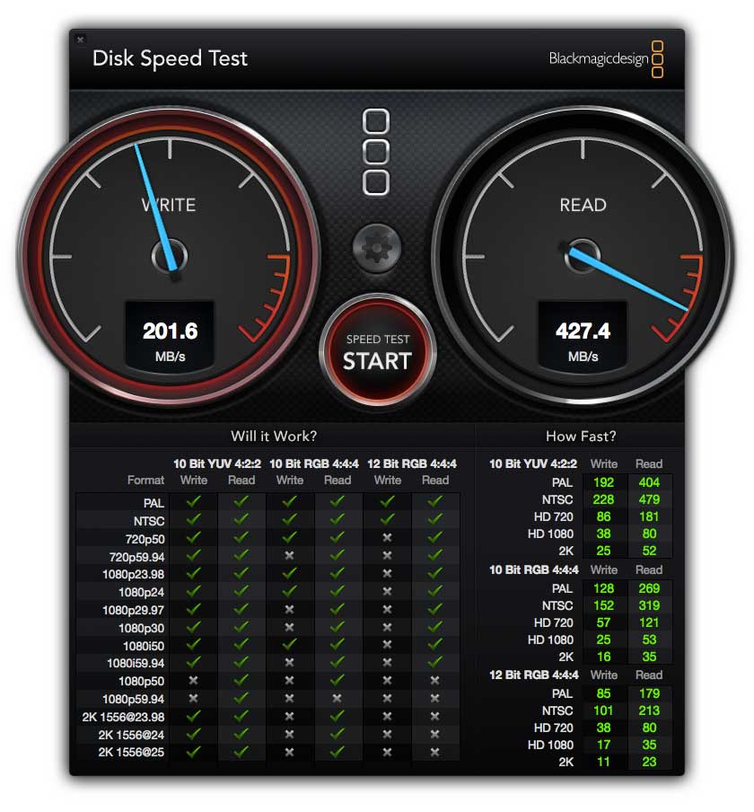 Dopo avere installato un’unità SSD o un disco rigido SATA da 2,5″ all’interno dell’astuccio (spingendo con delicatezza l’unità sul connettore), basta chiudere l’alloggiamento con il coperchio e collegarlo direttamente a una porta USB del computer tramite il cavo USB incluso. Un LED azzurro/rosso sulla parte posteriore lampeggia quando il drive è attivo (lettura e scrittura). Abbiamo fatto delle prove con un’unità SSD Plus di SanDisk, e l’utility Blackmagic Disk Speed Test su un MacBook Air da 11″ metà 2013 ha mostrato valori di 201.6MB/s in scrittura e 427.4MB/s in lettura, evidenziando la bontà del controller USB 3.0 integrato.
