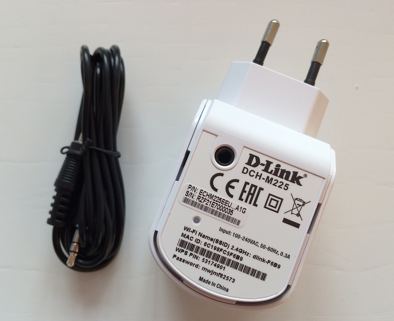 La confezione è quella molto sobria dei prodotti D-link più recenti ed e’ composta da scatola in carta + cartone completamente riciclabili: all’interno troviamo il prodotto in una accattivante livrea bianco lucida e un cavo Jack-Jack nero di buona lunghezza che servirà a collegare la presa audio posta nella parte inferiore. L’involucro ha una evocativa forma parallelepipeda con base a forma di “D” sulla cui sommità troviamo il logo D-link mentre sul fianco destro c’e’ il pulsante per l’attivazione del collegamento al router in modalità WPS: basterà premere il corrispondente pulsante sul router di casa (se ne è dotato) e i due comunicheranno nome e password in modo da estendere la rete.