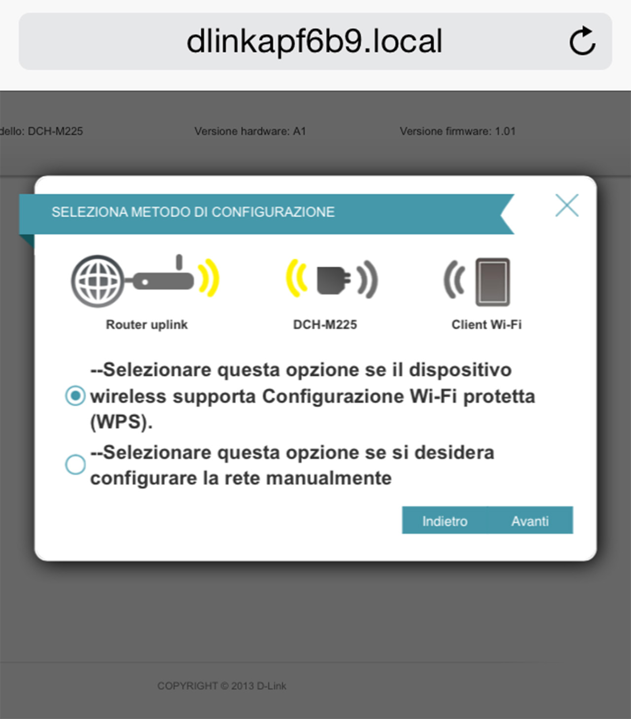 In realtà abbiamo trovato molto comoda anche la configurazione manuale a cui si accede scegliendo il nome del DCH M225 tra i dispositivi a portata del vostro computer, iPhone o iPad: una volta selezionata la rete si entra, attraverso un comune browser nella pagina di configurazione di Music EveryWhere che ci permetterà di scegliere a quale router vogliamo collegare il nostro extender e di inserire la relativa password di accesso.