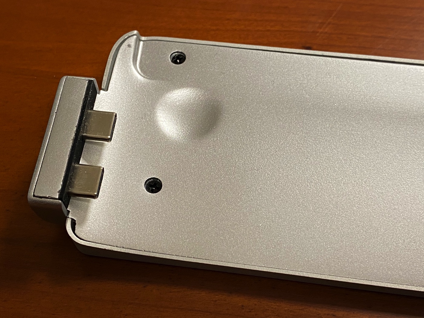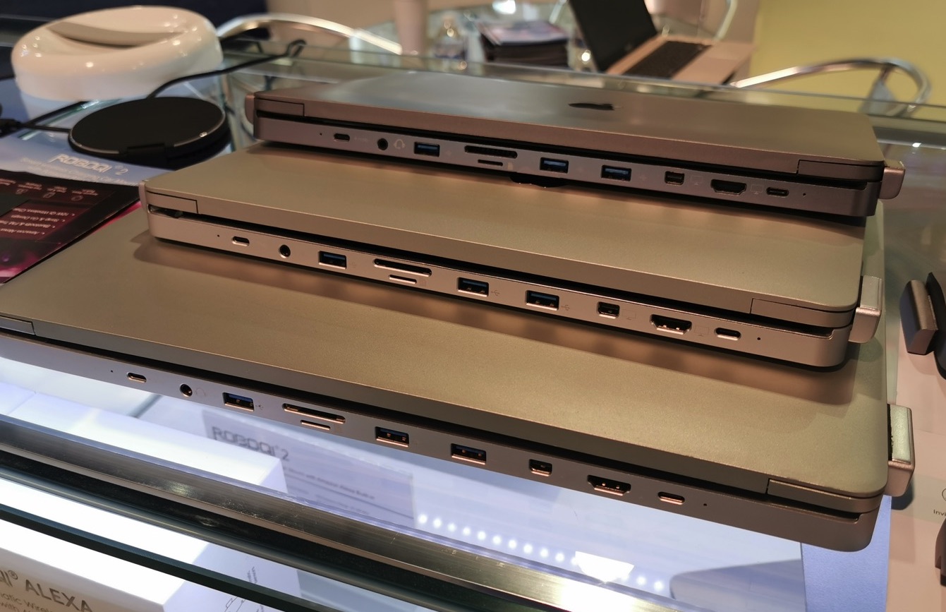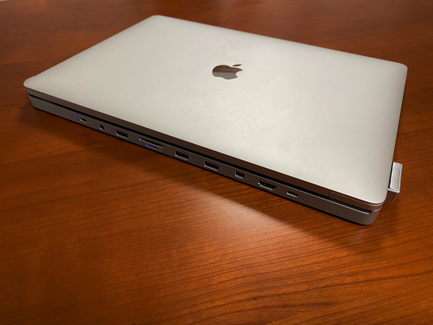 Esistono diversi Hub-dock “a barra” sul mercato: di solito sono lunghi cilindri con le porte che vi servono per espandere la capacità di collegamento del vostro MacBook Pro ma nessuno è in grado di fare “corpo unico” con il portatile per non dimenticarlo in giro e per non farlo rotolare o penzolare su un fianco.