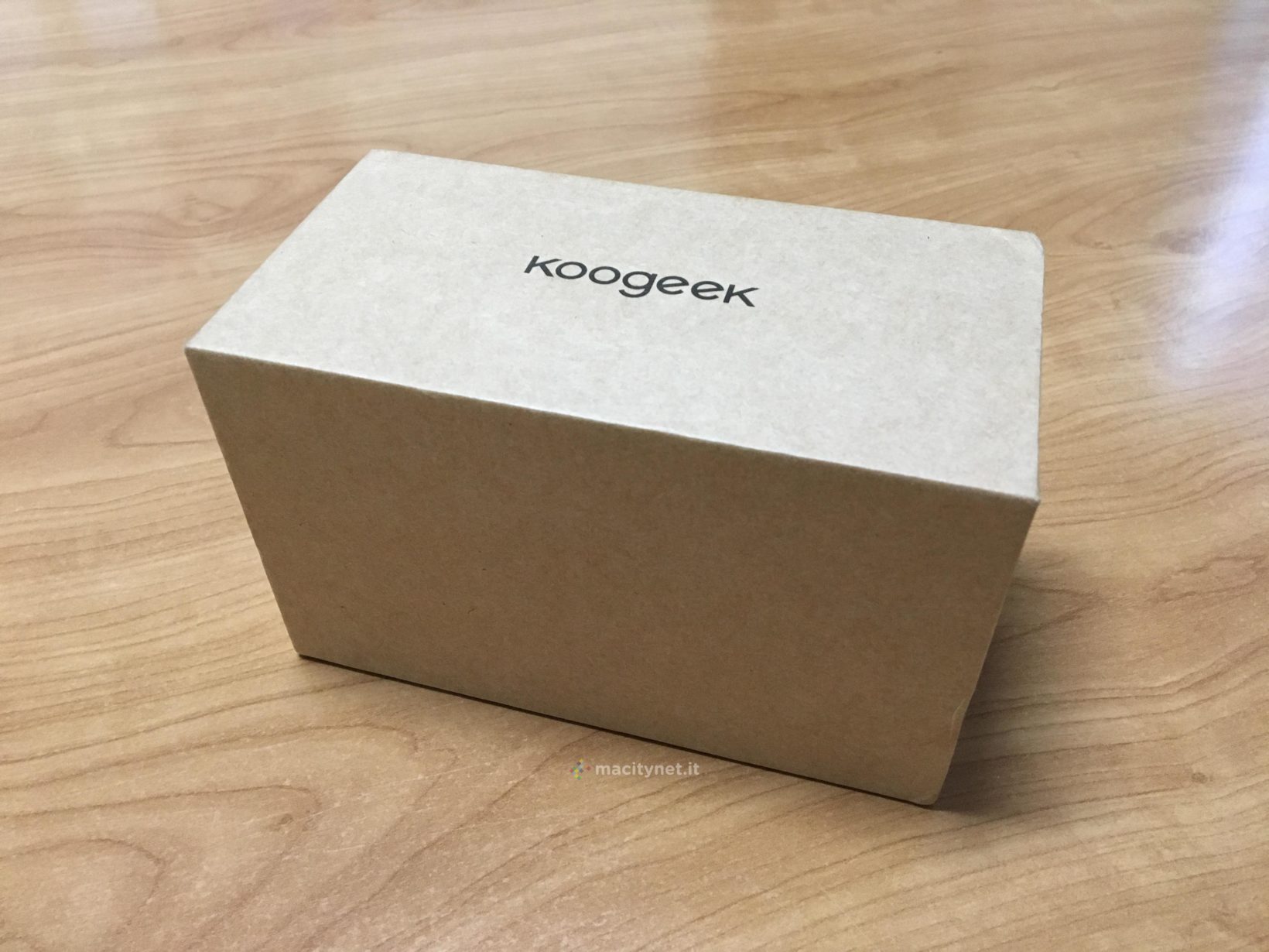 Nella confezione assieme alla fascia da braccio e al monitor si trovano il cavo USB per caricare la batteria, il manuale di istruzioni, il certificato di qualità e il certificato di garanzia. La confezione è quella di cartone, la confezione tipica dei prodotti Koogeek, inconfondibile nelle sue linee essenziali e pulite.