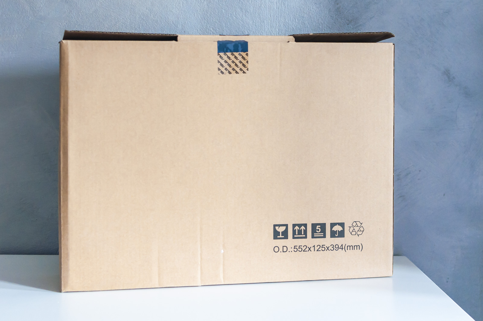 Frontalmente campeggia, in basso, il logo ASUS, che precede a destra, i due sensori di posizione: nella parte posteriore di nuovo il logo Asus in rilievo e un adesivo con tutte le normative burocratiche obbligatorie per i device.