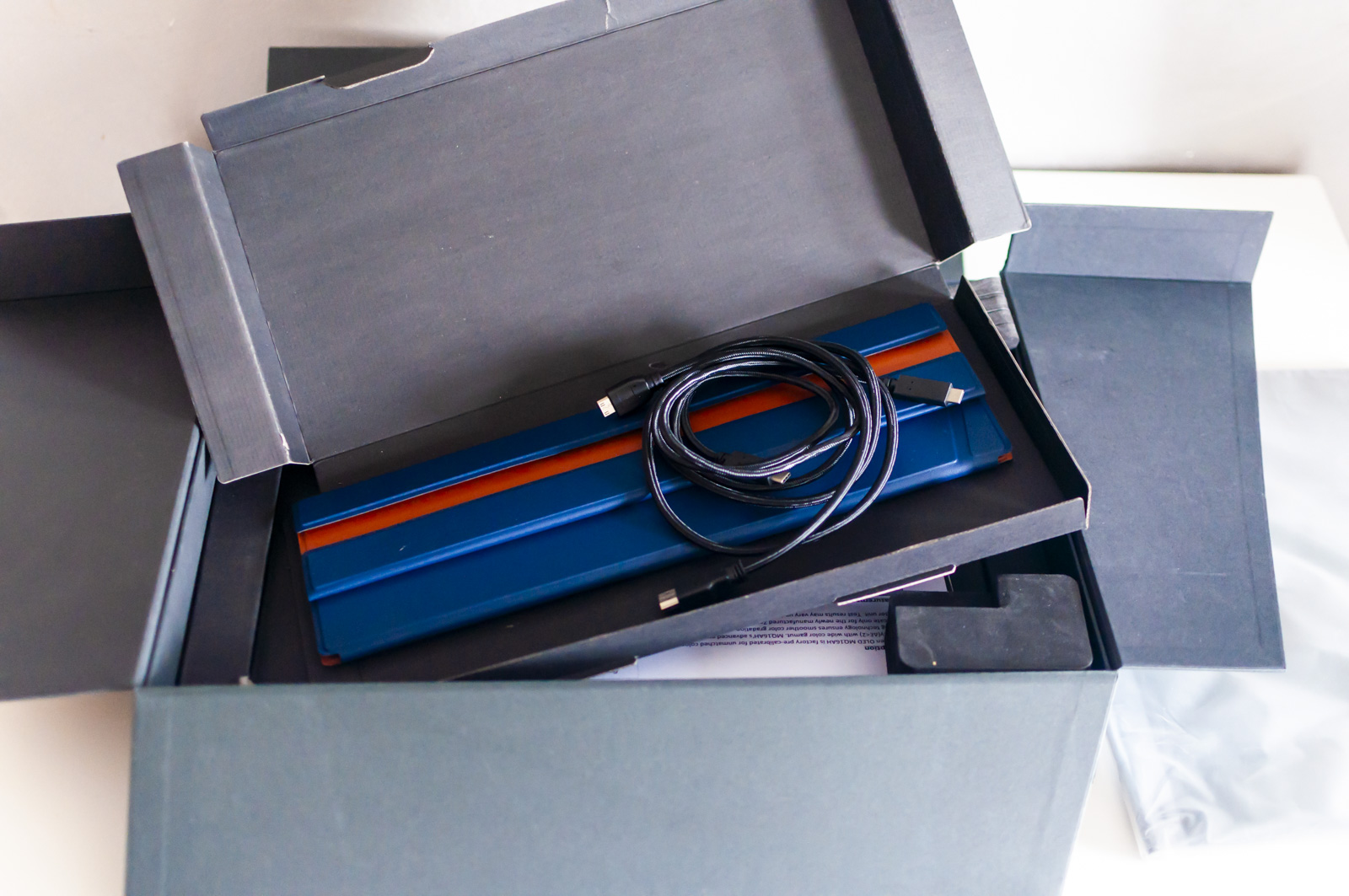 Tanto la confezione esterna è minimalista ed ecologica, tanto quella interna esprime il lusso e la voglia di stupire di questo display, le cui promesse possiamo anticipare sono mantenute.
