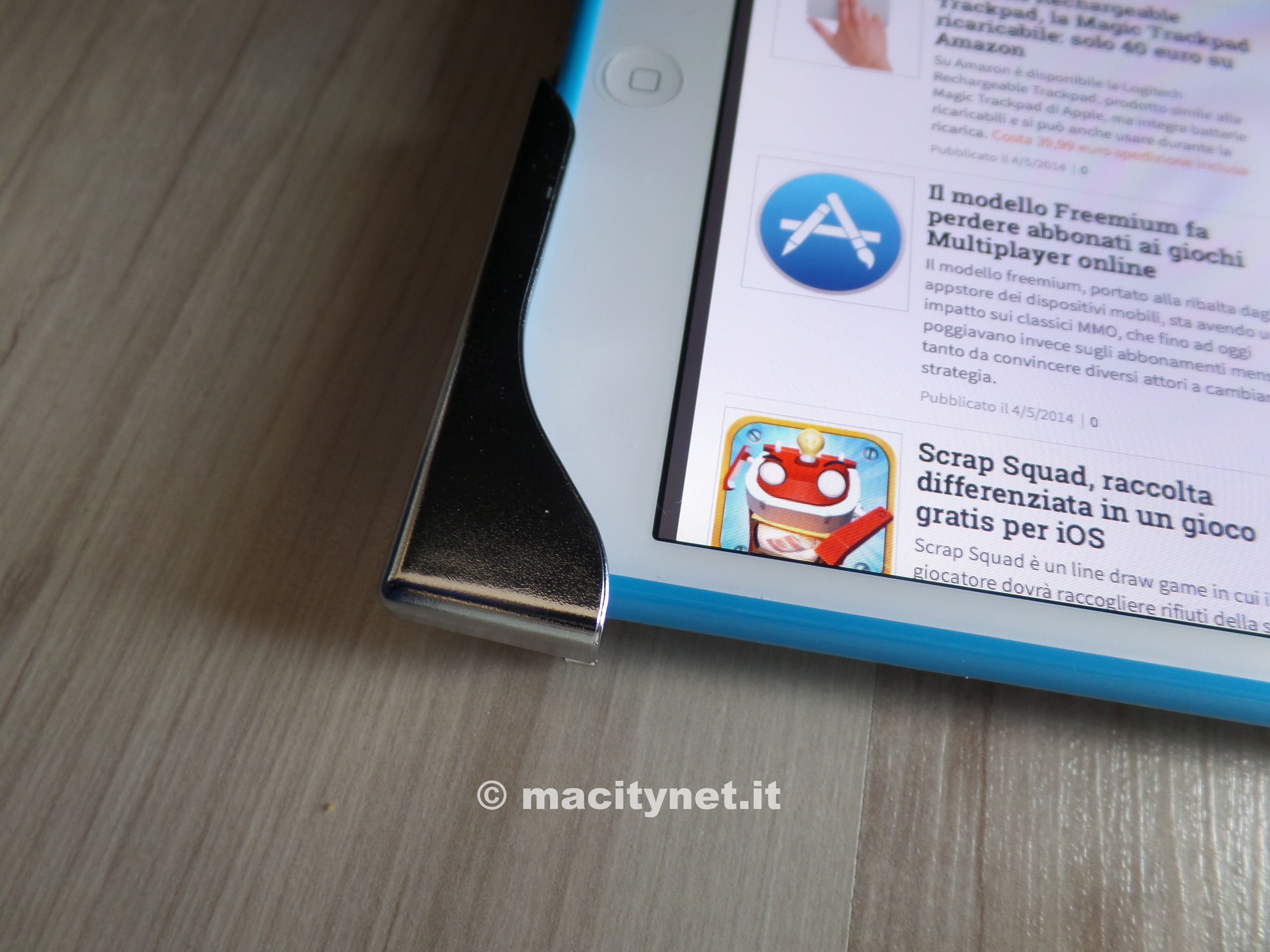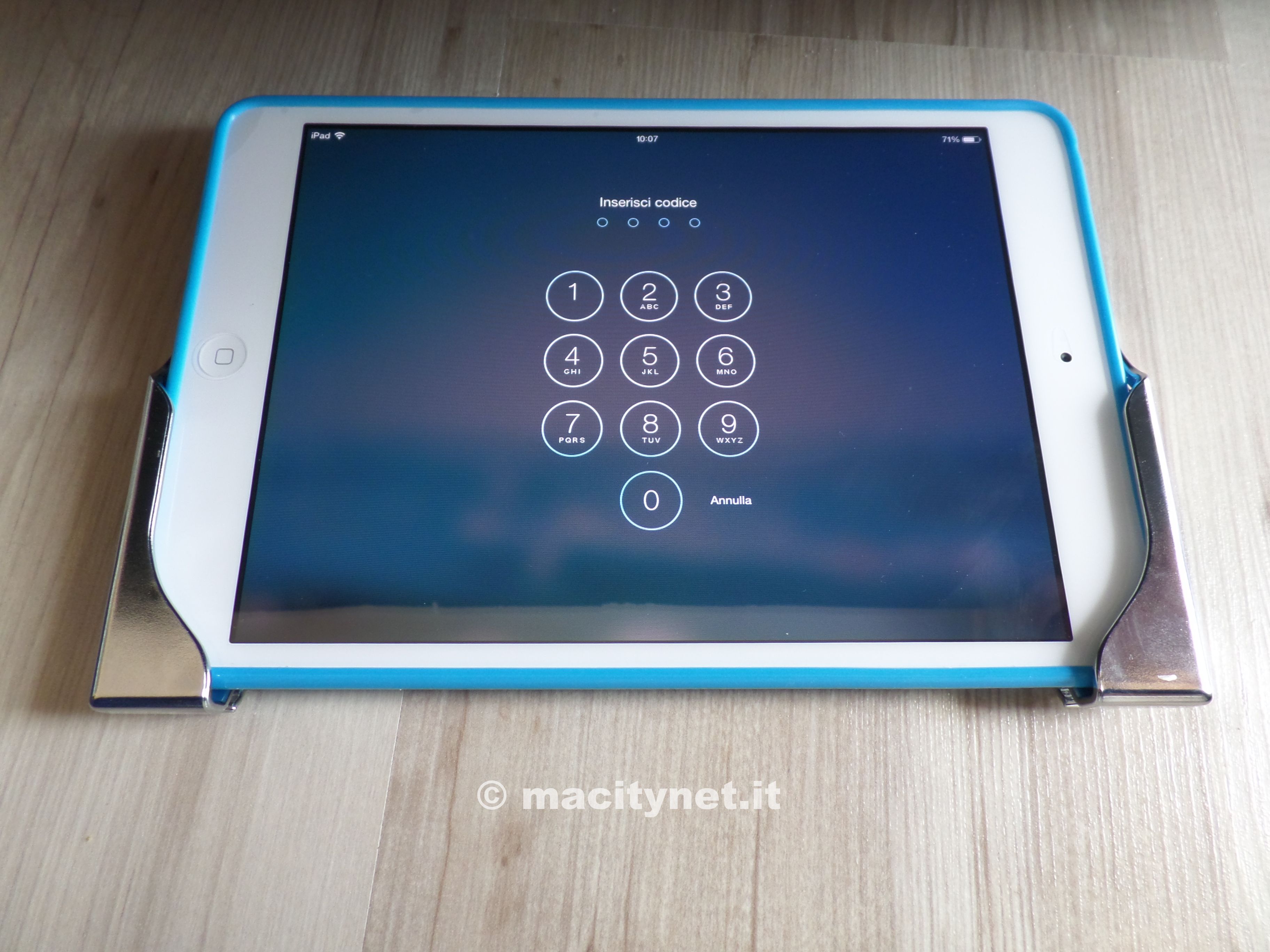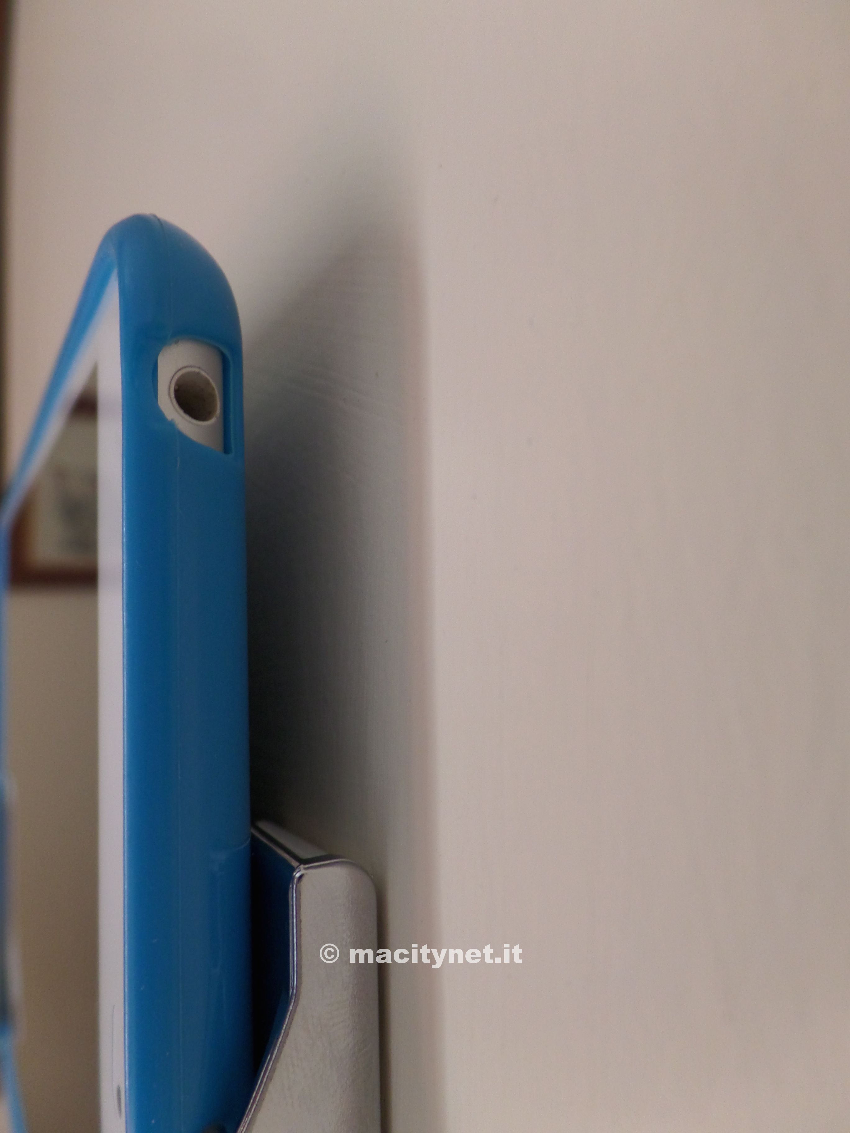 Koala Mount è, probabilmente, il dock più adatto per iPad e tablet di grosse dimensioni, dato che i due ganci di cui è composto formano quasi un binario all’interno del quale inserire il proprio dispositivo. I ganci sono costruiti in plastica e, seppur leggera e all’apparenza fragile, assicura una salda presa del dispositivo. Lo spessore dei ganci permette di accogliere anche iPad dotati di cover ingombrantii, comprese le smart cover di Apple. Questa caratteristica permette di agganciare iPad al muro senza la preoccupazione di spogliarlo, di volta in volta, delle protezioni. Le parti esterne dei due ganci sono traforate, così da poter raggiungere facilmente il tasto di accensione dei dispositivi e, più in generale, tutti i tasti che sui tablet vengono posizionati sulle cornici superiori. Infatti, posizionando il dispositvo in orizzontale, i pulsanti e gli ingressi che si trovano sulla cornice in alto o in basso, verrano a trovarsi in corrispondenza con i fori presenti nei due ganci. Ovviamente, non trattandosi di dock appositamente studiati per i dispositivi iOS è impossibile aspettarci che i fori del dock combacino perfettamente. Ad esempio, con iPad Mini si fatica un po’ ad inserire il connettore lightning, mentre con un iPad full size non si ha alcun tipo di problema.