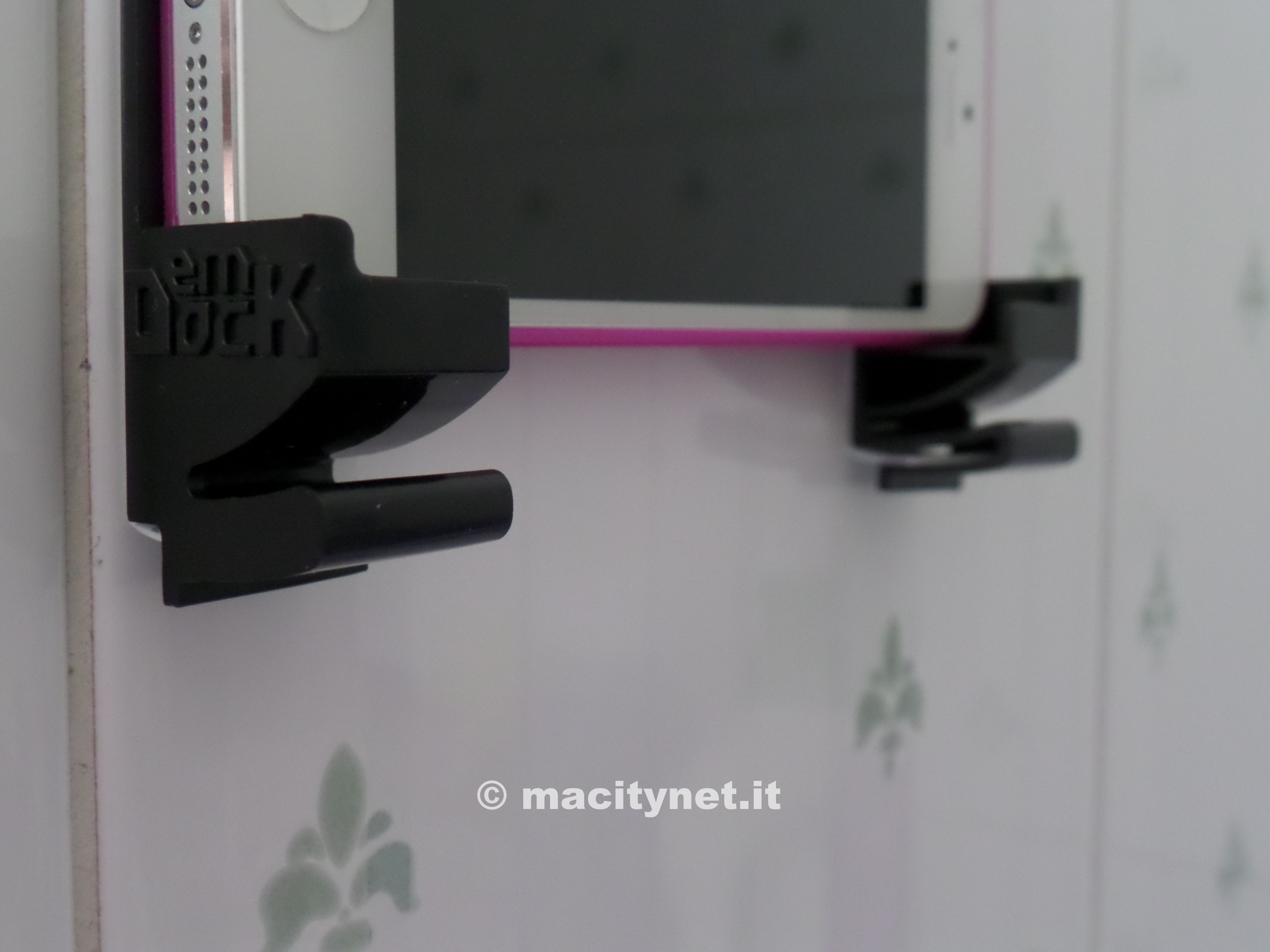 Dockem e Koala Mount rappresentano delle soluzioni economiche, minimali ed eleganti per appendere a muro iPhone e iPad. Anche se di plastica, i ganci assicurano i dispositivi in modo saldo e il biadesivo contenuto nella confezione di vendita, acquistabile anche separatamente, è di ottima fattura. Nessuna garanzia che con il tempo il peso del dispositivo possa far cedere i due ganci e allentare la presa dal muro, ma la qualità del prodotto è davvero soddisfacente. Consigliati, senza alcuna remora.
