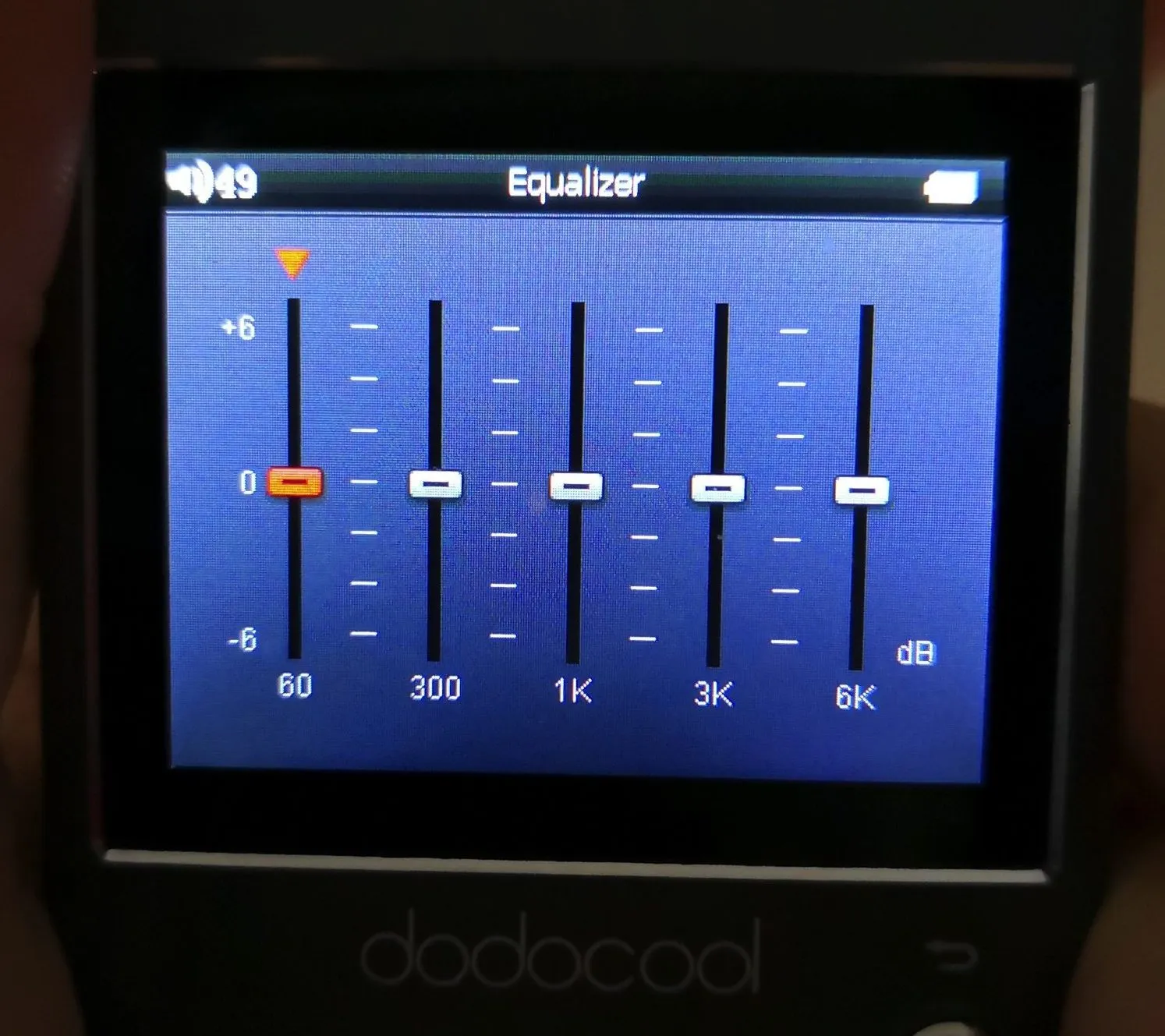 La qualità dell’ascolto è ottima senza equalizzazione ma il lettore può essere personalizzato sia con dei preset di equalizzazione sia con una regolazione abbastanza fine (5 le bande disponibili) sulle frequenze per gestire al meglio le capacità uditive dell’ascoltatore e le sue eventuali carenze (o quelle dell’impianto di amplificazione) su alcune zone della gamma. L’equalizzatore ha pure un aspetto famigliare per gli appassionati di Hi-Fi.