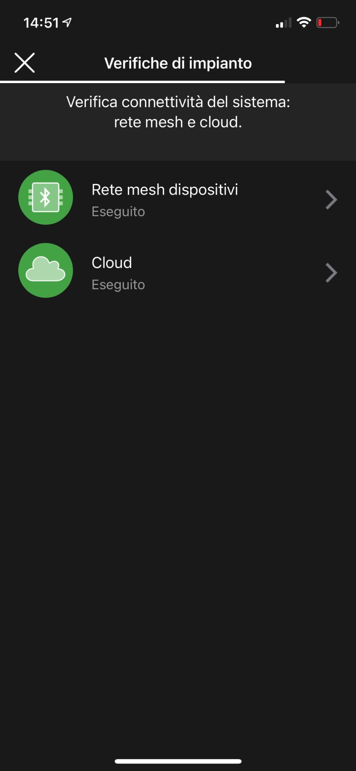 L’App view Wireless non serve solo a configurare i singoli dispositivi del nostro impianto ma pure creare o ri-creare la sincronizzazione interna della rete mesh e il collegamento ad internet che ci pemetterà il controllo da remoto. L’operazione è molto semplice e richiede molto meno di un minuto per impianti base come il nostro. Alla fine le icone che rappresentano l’impianto e la rete esterna saranno cerchiate di verde.