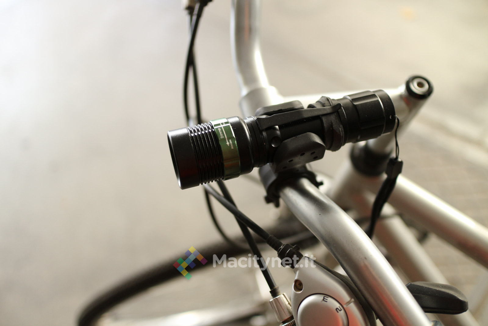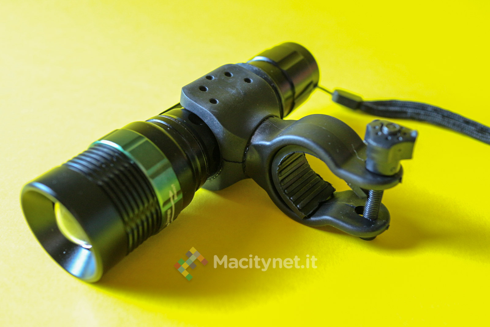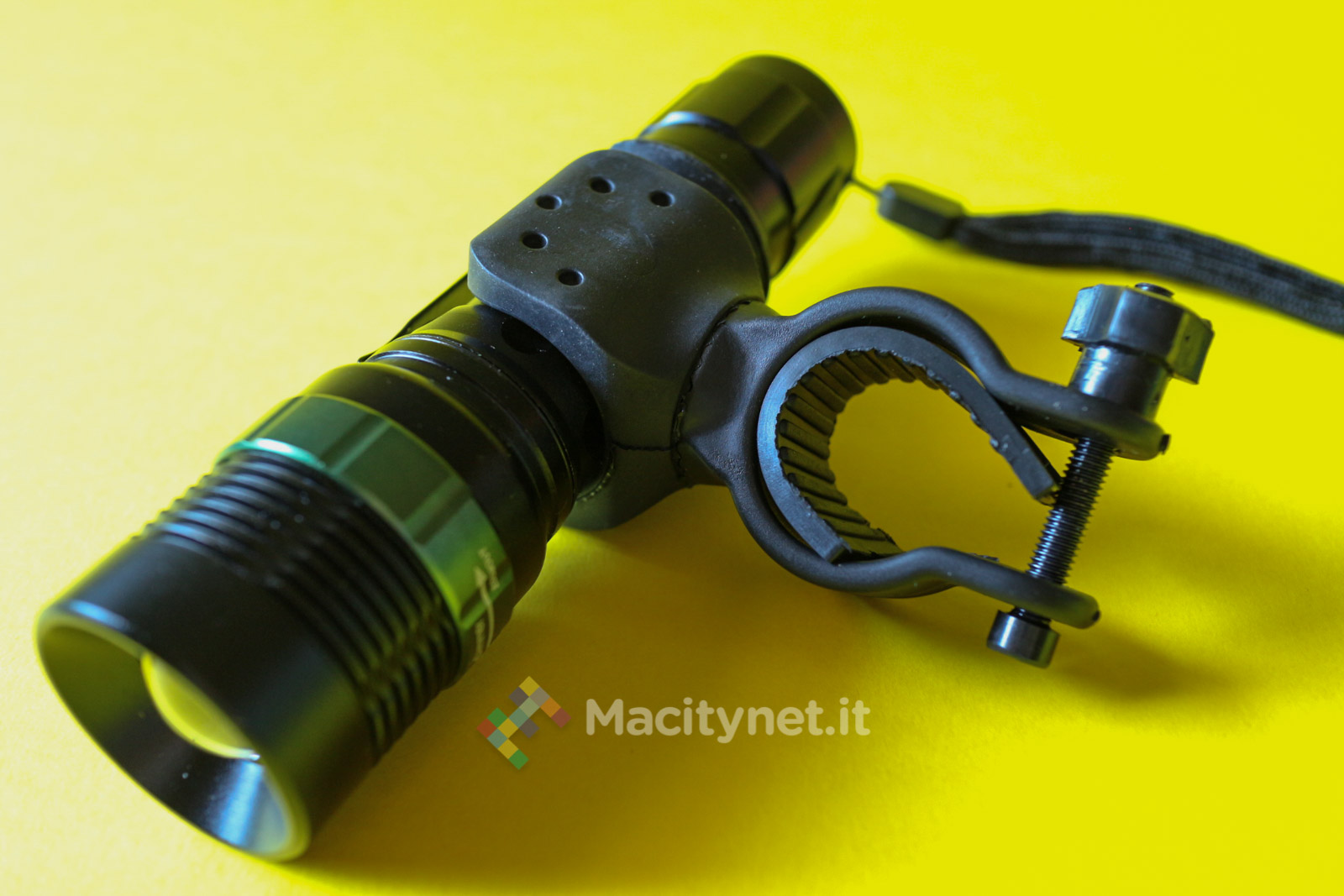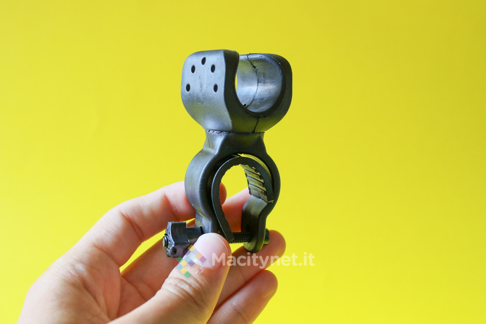 Nella confezione, oltre al laccio da polso, ci sono due utili accessori che facilitano l’uso della torcia in altre occasioni. Oltre che essere impugnata, si può agganciare alla bicicletta affidandosi al sistema di aggancio/sgancio rapido fornito in dotazione. Si tratta in sostanza di una clip che si avvita al manubrio della bicicletta e permette, all’occorrenza, di afferrare la torcia: in questo modo ci si potrà fare luce mentre si pedala anche di notte, segnalando al contempo la propria presenza in carreggiata. C’è poi un sistema di fasce elastiche che permettono di agganciare la torcia anche in testa; in questo modo si potrà illuminare ciò che si presenta davanti ai propri occhi avendo le mani totalmente libere. Diverse le occasioni in cui potrebbe fare comodo, come ad esempio l’esplorazione di una grotta, una passeggiata tra i boschi, ma anche in campeggio o in fotografia notturna.