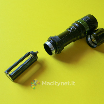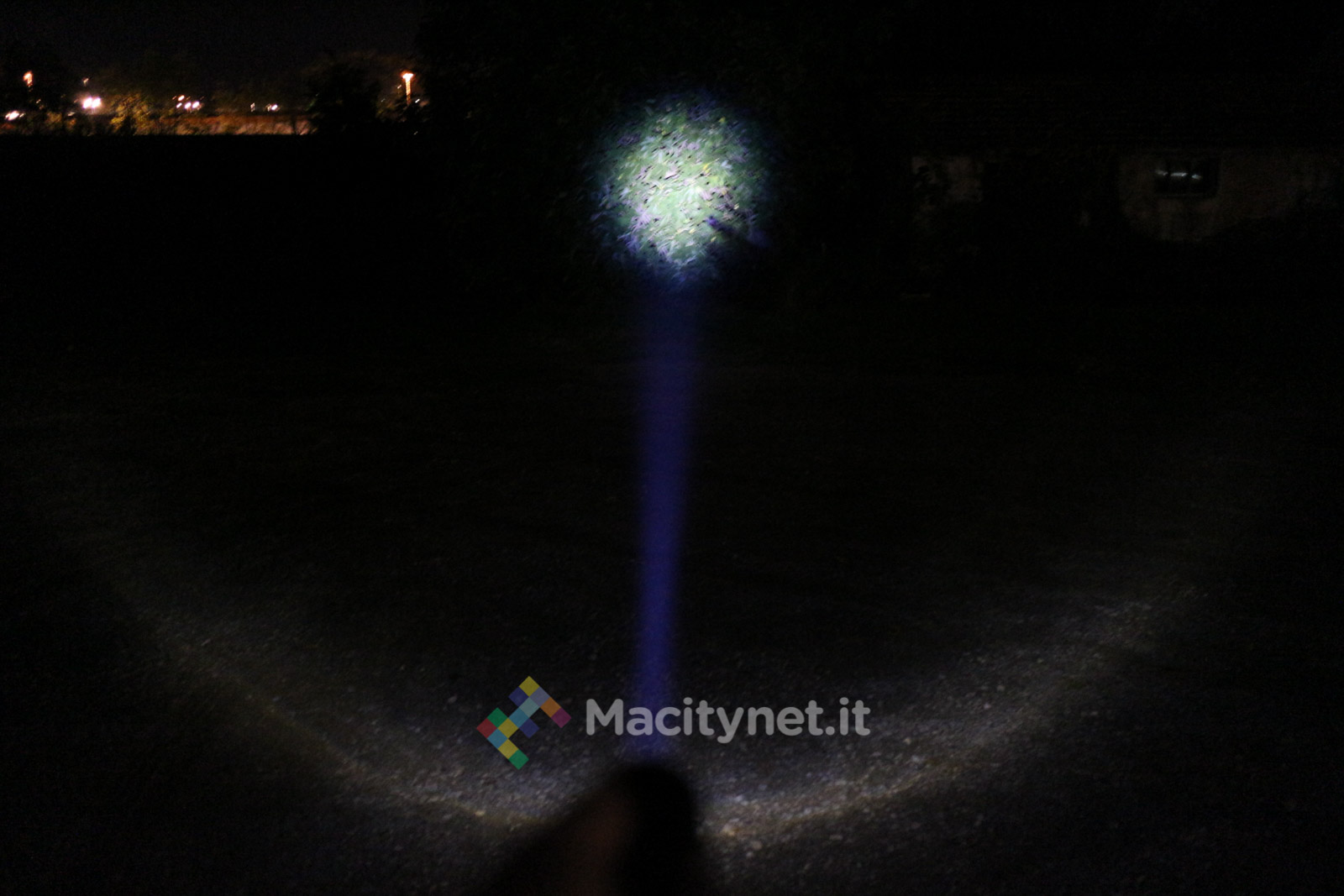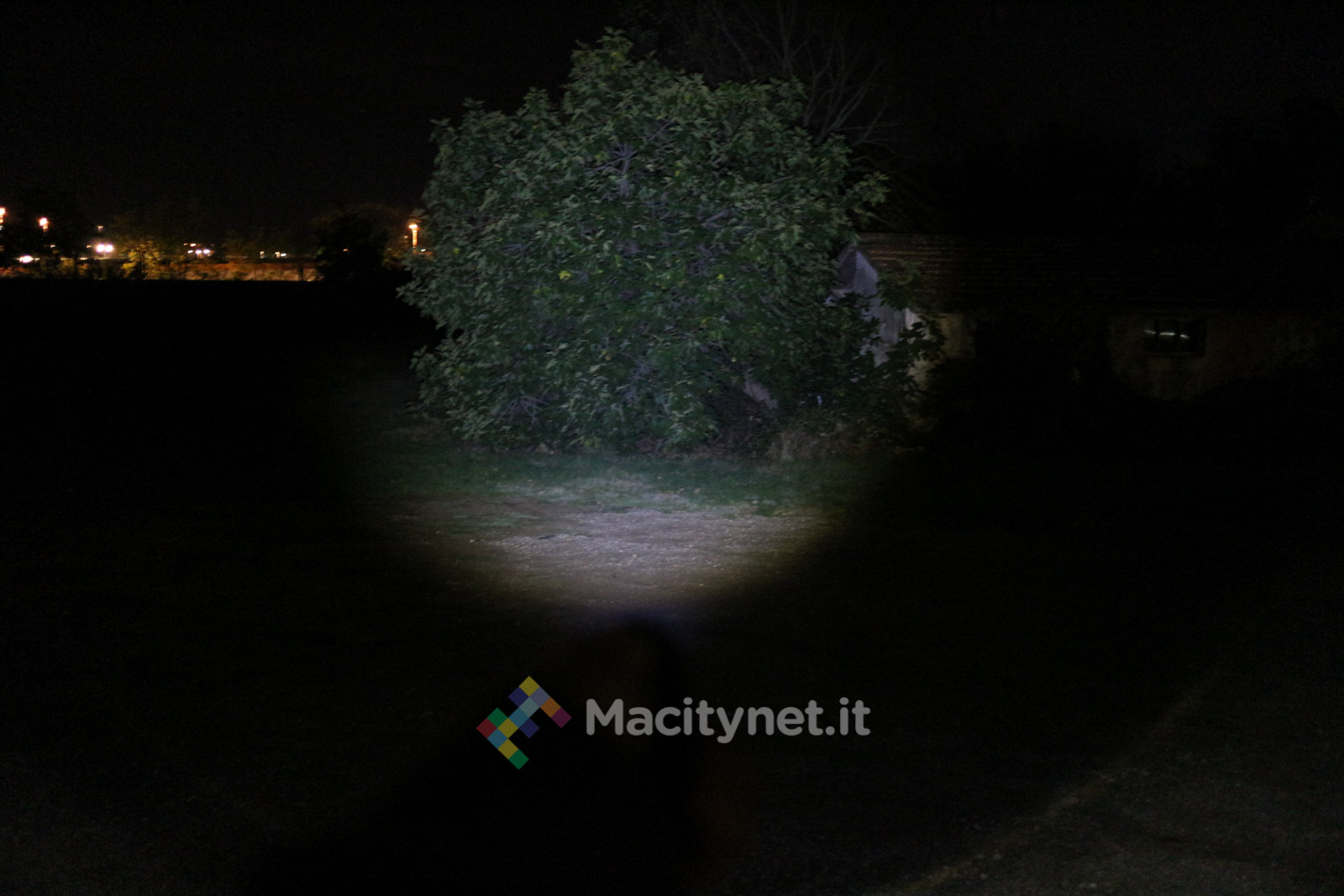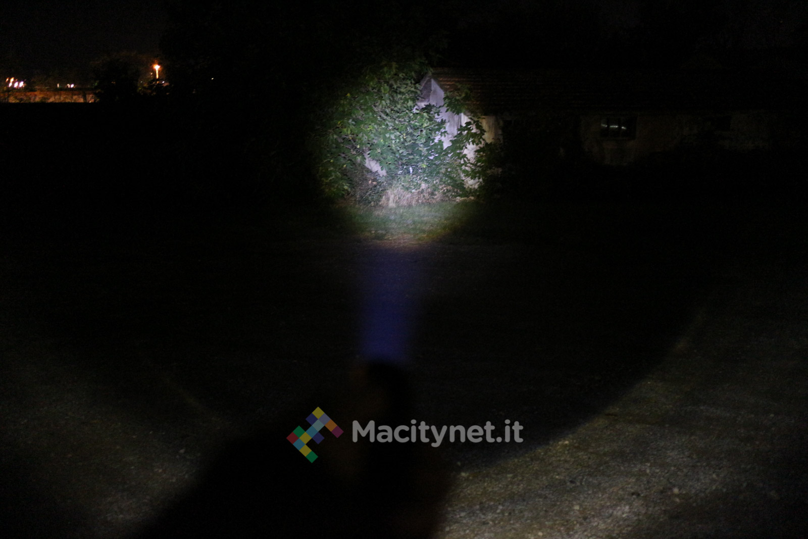 Sulla carta, la torcia offre una luce di 500 lumen. All’atto pratico, con la torcia accesa in modalità 1, quindi con la luce al massimo della potenza, il fascio concentrato riesce ad illuminare una persona a circa 50 metri di distanza permettendoci di distinguerne chiaramente il volto. Con il fascio più ampio si ha una buona visibilità entro i primi 20 metri di distanza, più che sufficienti quindi per illuminare una strada completamente buia. Con la modalità 2, quindi con una potenza ridotta circa della metà, vengono dimezzate anche le prestazioni della torcia. Per quanto riguarda l’autonomia, dipende dalle batterie che si utilizzano. Per le nostre prove abbiamo usato una batteria 18650 ricaricabile da 1.800 mAh e ci ha garantito circa quattro ore di luce continua al massimo della potenza, indebolendosi gradualmente, fino a spegnersi completamente. L’abbiamo poi ricaricata confermando che, con la modalità 2 per una illuminazione al 50% di potenza, la durata è raddoppiata. Tutto comunque dipende dalle batterie che si abbinano alla torcia. Su Amazon (click qui) trovate diverse soluzioni, anche ricaricabili, per pochi euro, come questo kit a 14,99 euro che comprende due batterie 18650 da 3.000 mAh con caricabatterie incluso.