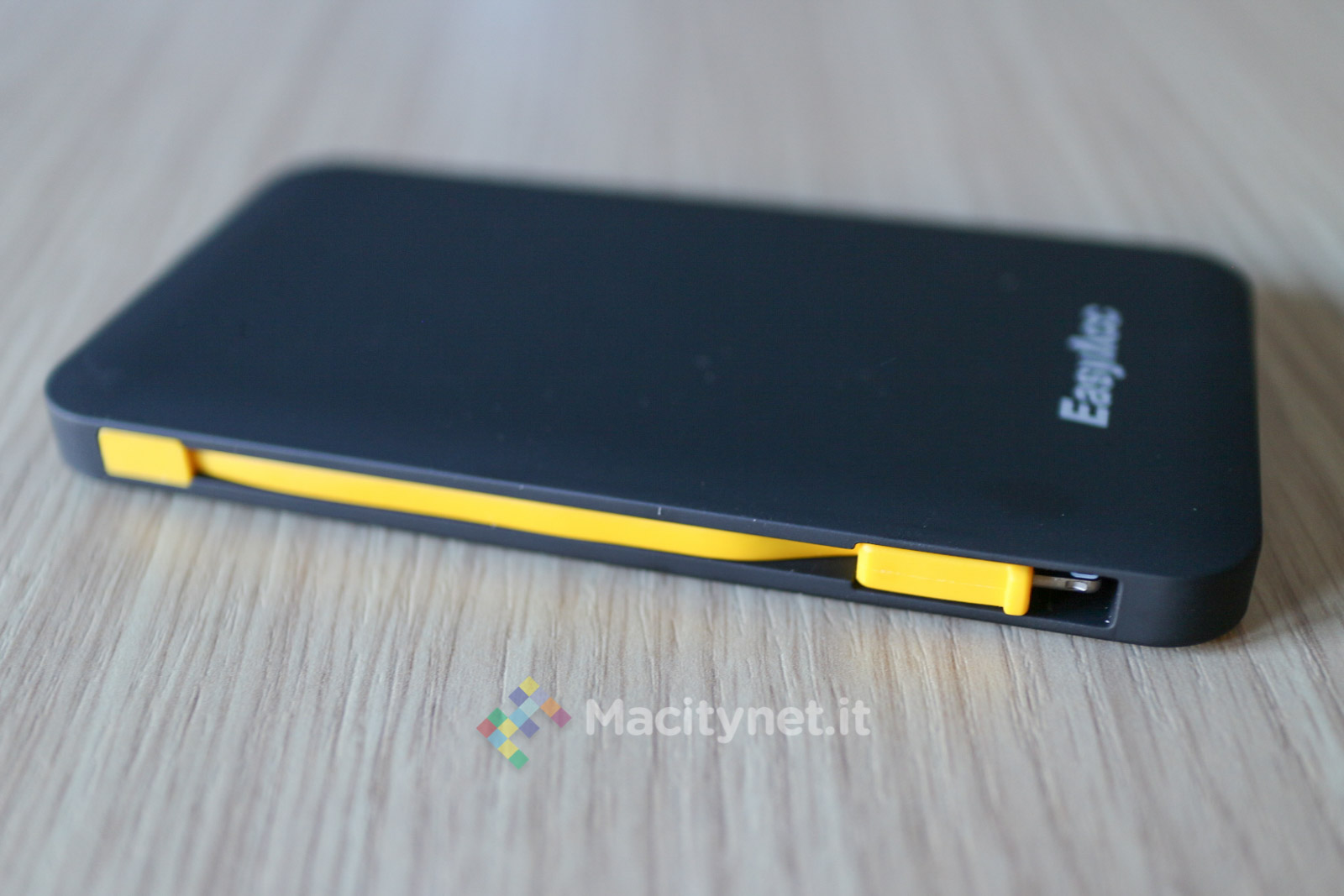 Per concludere, la batteria è sufficientemente tascabile, ma soprattutto è uno di quegli accessori all-in-one che non hanno bisogno di nient’altro per funzionare. Almeno per chi ha un dispositivo iOS, acquistata la batteria non dovrà più pensare a niente visto che comprende, oltre a 5.000 mAh di energia aggiuntiva, anche un cavo Lightning MFI, quindi certificato Apple, opportunamente incassato nella scocca.