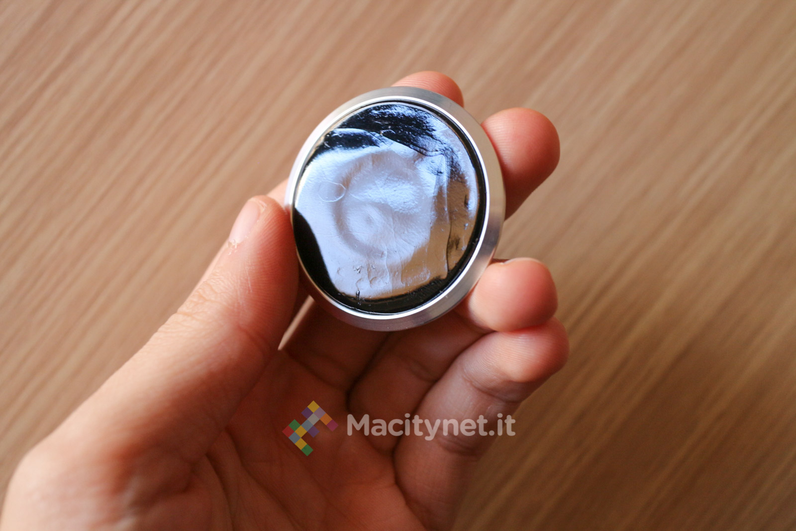 Cosa rende speciale EasyAcc MWCAR-BMAG lo si capisce sfogliando le foto nella galleria che alleghiamo alla recensione. Si tratta sostanzialmente di una sfera di metallo che collabora con una piastra magnetica: quest’ultima si fissa sul retro del telefono attraverso una speciale “ventosa in gel” molto appiccicosa che può essere attaccata e staccata più e più volte e, lavandola con un po’ d’acqua quando comincia ad attaccare meno, riacquista tutte le proprietà adesive apprezzate al primo unboxing (inclusa nella scatola c’è comunque una seconda “ventosa” sostitutiva).