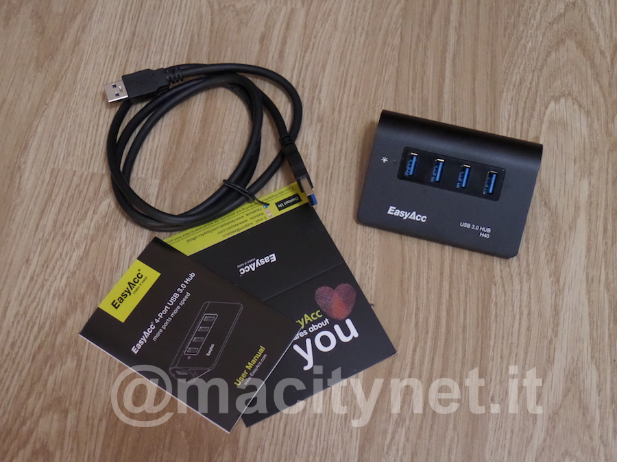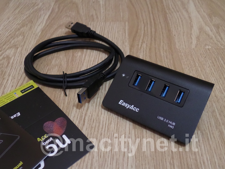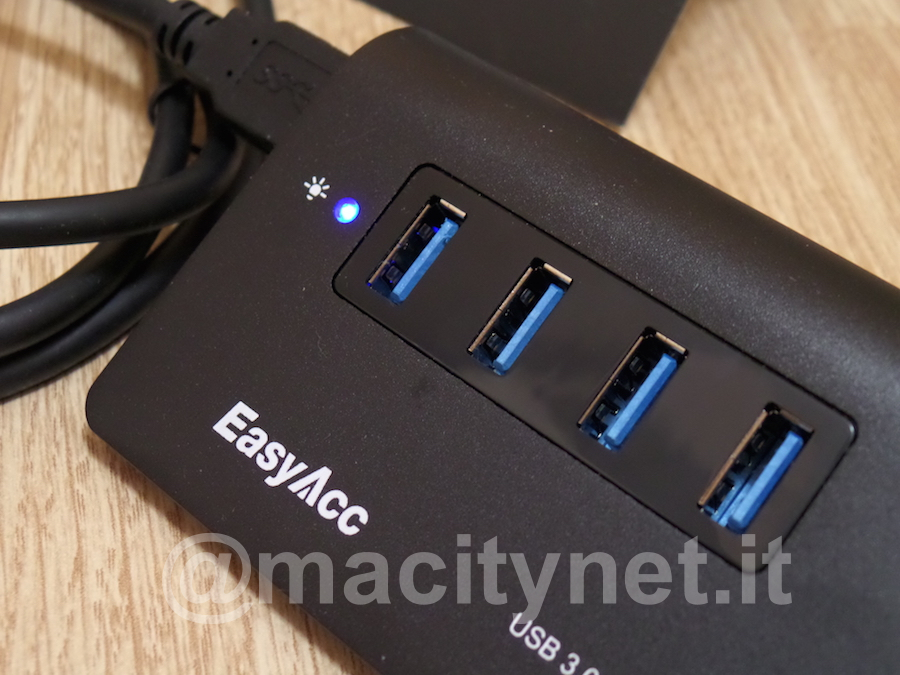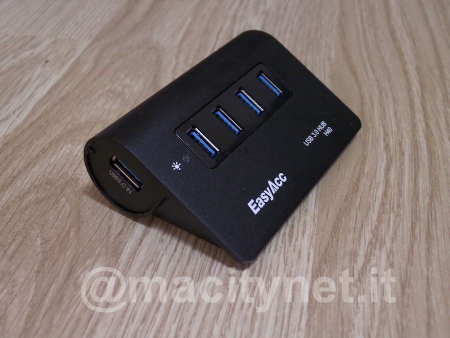 Utile per portatili, ma anche per PC desktop come ad esempio iMac, EasyAcc Super Speed USB 3.0 è un HUB in alluminio anodizzato, segnato da un originale e accattivante tinta di color nero. Questo accessorio dotato di con 4 porte USB, davvero elegante e ben costruito ed anche economico ( solo 18,99 euro Amazon a questo indirizzo) è stato messo alla prova da Macitynet nei giorni scorsi.