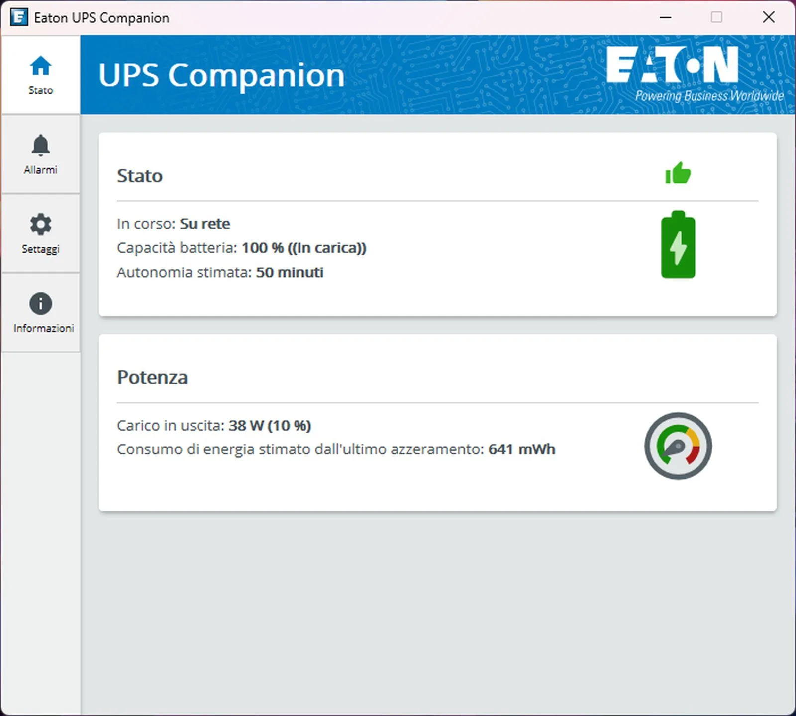 In una situazione normale, l’Eaton UPS 5E Gen2 funziona in modo molto silenzioso: non fa rumore, scalda molto poco e tipicamente non necessita di un monitoraggio continuo, il collegamento USB ignorato per la maggior parte del tempo.