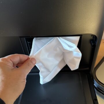 L’acqua calda, peraltro, non solo serve a rimuovere meglio le macchie più ostinate dai moci, come potrebbero essere quelle di caffè o di olio, ma migliora anche l’efficacia della soluzione detergente. Il produttore garantisce, insomma, una efficienza di pulizia tramite i panni pari o superiore al ≥96%.