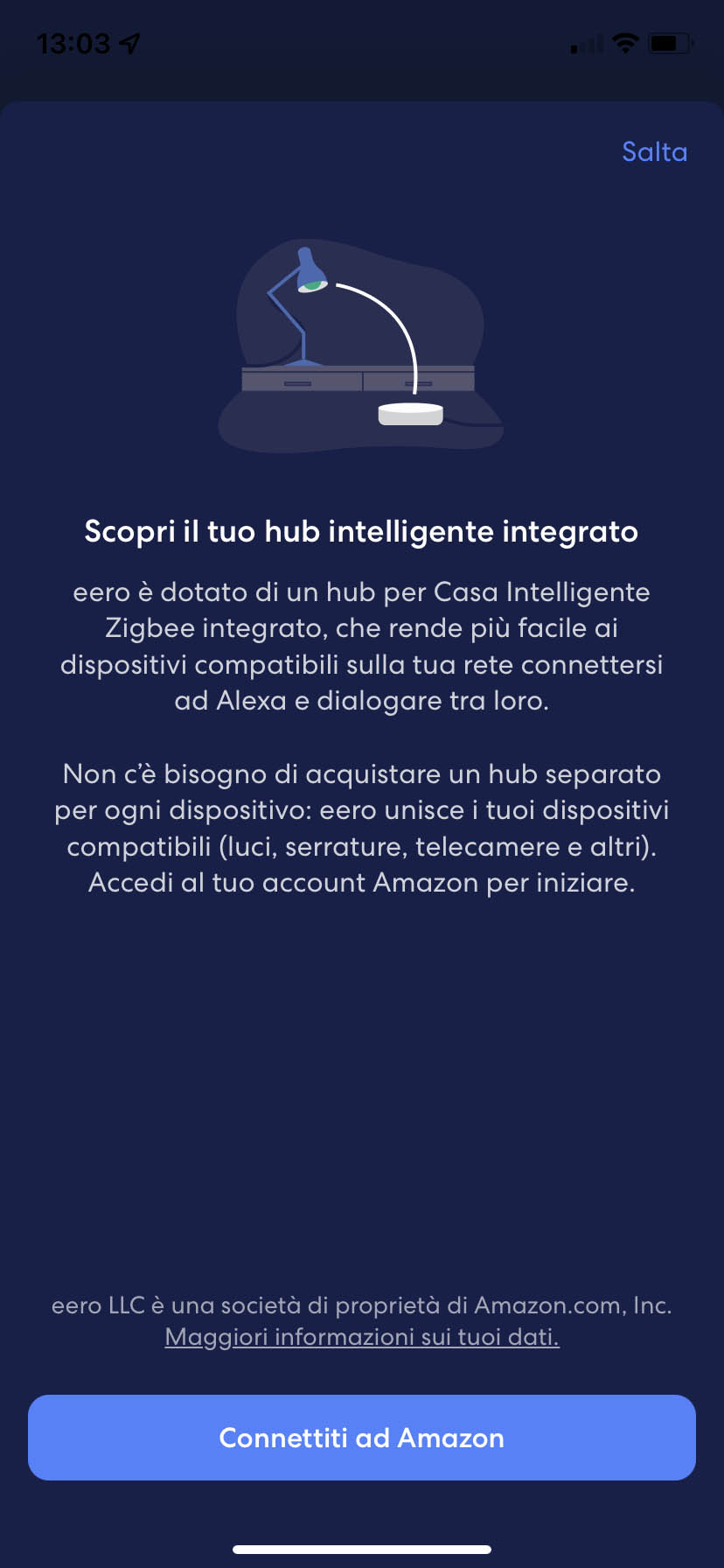 Con un hub Zigbee smart home integrato, eero 6 elimina la necessità di altri hub aggiuntivi. Dopo aver aggiunto l’account eero e Amazon, i dispositivi Zigbee come luci smart, serrature, prese e altri dispositivi compatibili, si connettono direttamente a eero. Dall’app è possibileestire la rete, mettere in pausa Internet, condividere la rete con amici o ospiti e altro ancora, anche quando si è fuori casa. Non mancano Skill eero per Alexa che cosnentono di utilizzare un dispositivo abilitato per Alexa o l’app Alexa per gestire le funzionalità con la voce utilizzando comandi del tipo: “Alexa, attiva la rete ospite”.