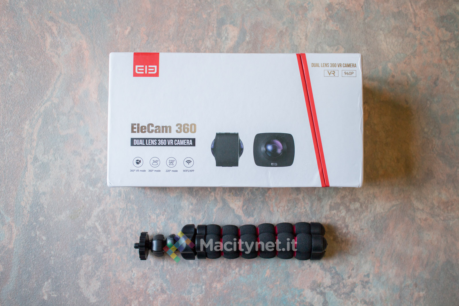 Per le registrazioni EleCam 360 fornisce un file di output in formato H.264 ed estensione *.MOV, con una risoluzione di 1920x1080P a 30 fps, mentre le foto scattare in JPG hanno una risoluzione massima di 3008×1504. La camera incorpora anche un microfono, così da catturare i rumori ambientali durante i video, e ha dimensioni davvero contenute, pari a 60×49.4×32.7mm, con un peso totale di 104 grammi.