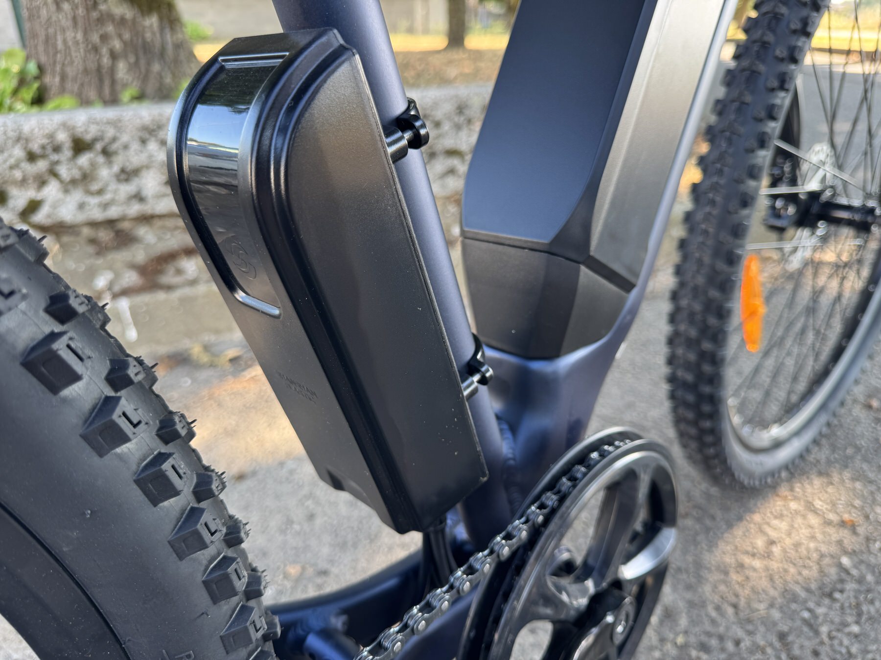 Manca però il sensore di coppia che incide in particolare sull’avvio da fermo. Il motore per attivarsi ha bisogno di circa mezzo giro di pedali, quindi se non si è in movimento si deve fare un po’ di sforzo iniziale. Ma visto che non parliamo di una vera bici da off-road tecnici dove questo limite sarebbe molto problematico, il problema è perfettamente gestibile. Tenete conto che per partire in salita dovrete magari andare in piedi sui pedali.