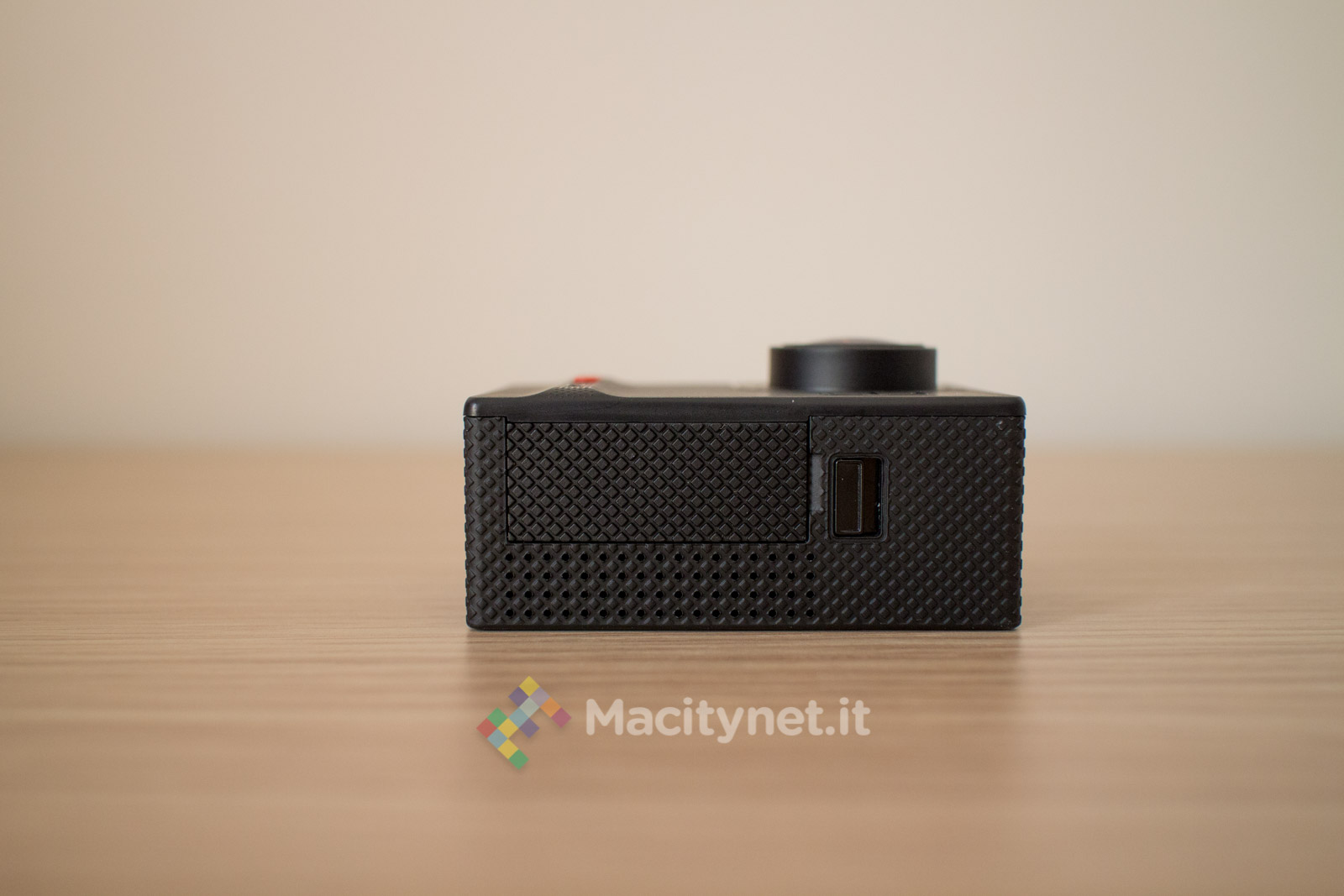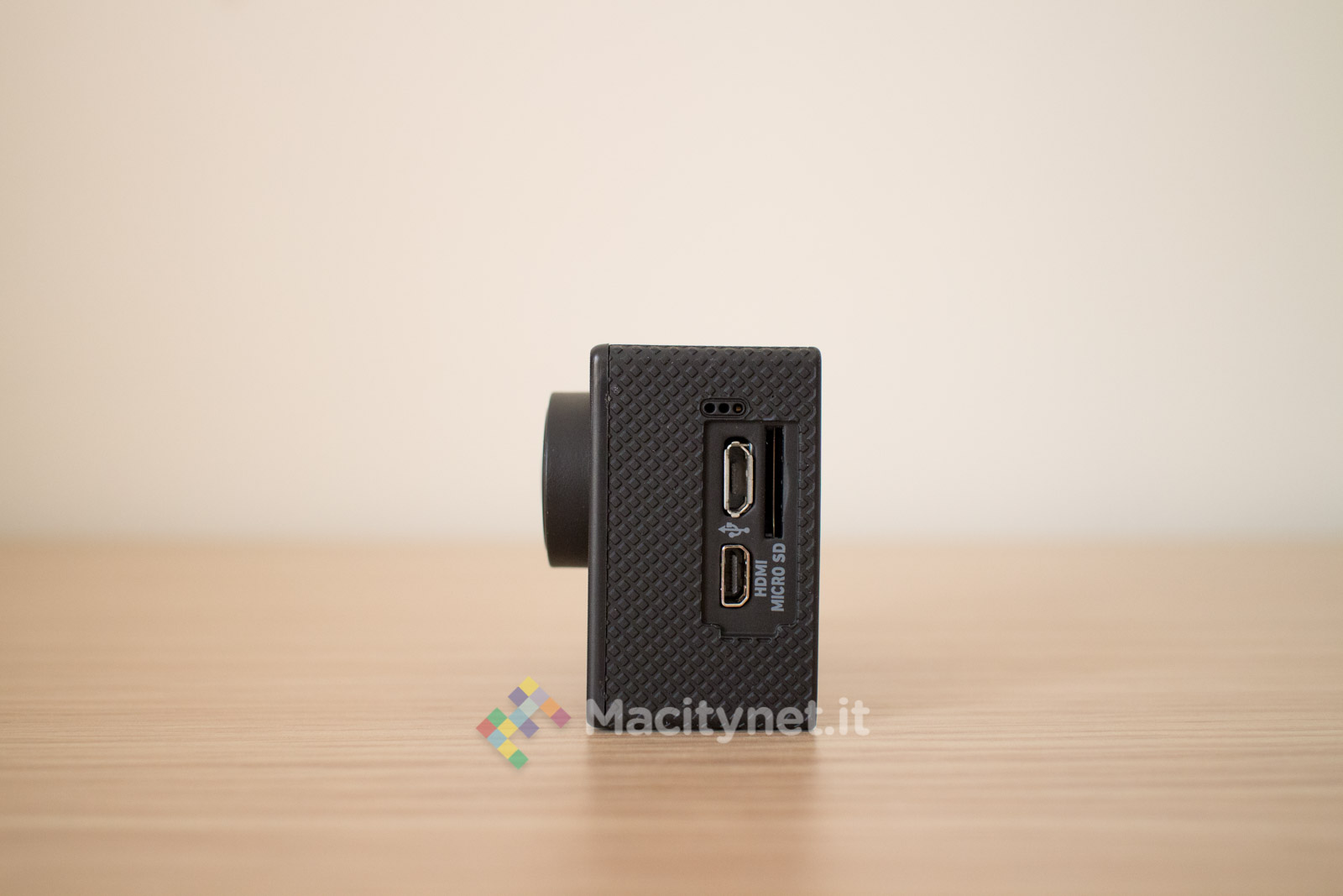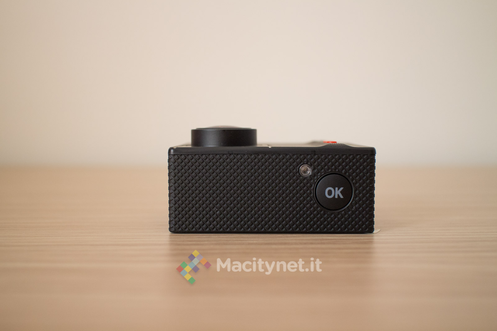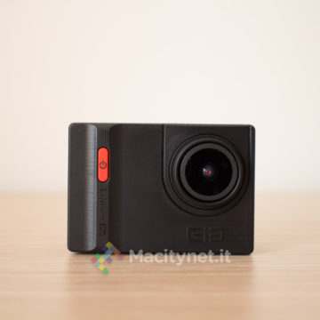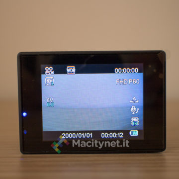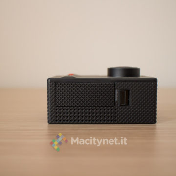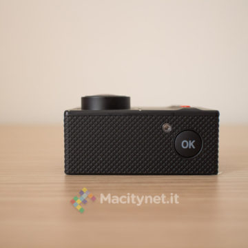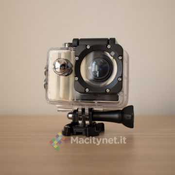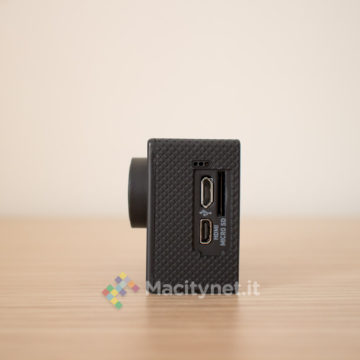 La camera non si discosta molto dalle altre che troviamo sul mercato. Piccola quanto una GoPro, di cui ne imita anche le forme, è completamente in plastica, gommata nella cornice, mentre è satinata sulla facciata frontale, unica parte che in effetti è leggermente diversa da altre. Qui, il pulsante ON/OFF, è di forma allungata e di colore rosso, una scelta che ne facilita il rintracciamento anche a colpo d’occhio. Ai lati i classici pulsanti direzionali che attivano anche il WiFi, mentre sul lato superiore trovano posto un indicatore LED ed il tasto OK che funge da pulsante per azionare anche l’acquisizione di foto e video. Per finire sul lato sinistro, l’ingresso microUSB per la ricarica, lo slot per la microSD e l’ingresso miniHDMI per il collegamento ad un TV, mentre sul fondo il vano per la batteria, la stessa che troviamo in tutte le altre action cam di questo tipo e di facile reperibilità anche su Amazon qualora si volesse sostituire o accompagnare ad una seconda batteria magari anche più capiente.