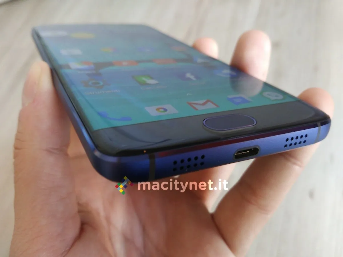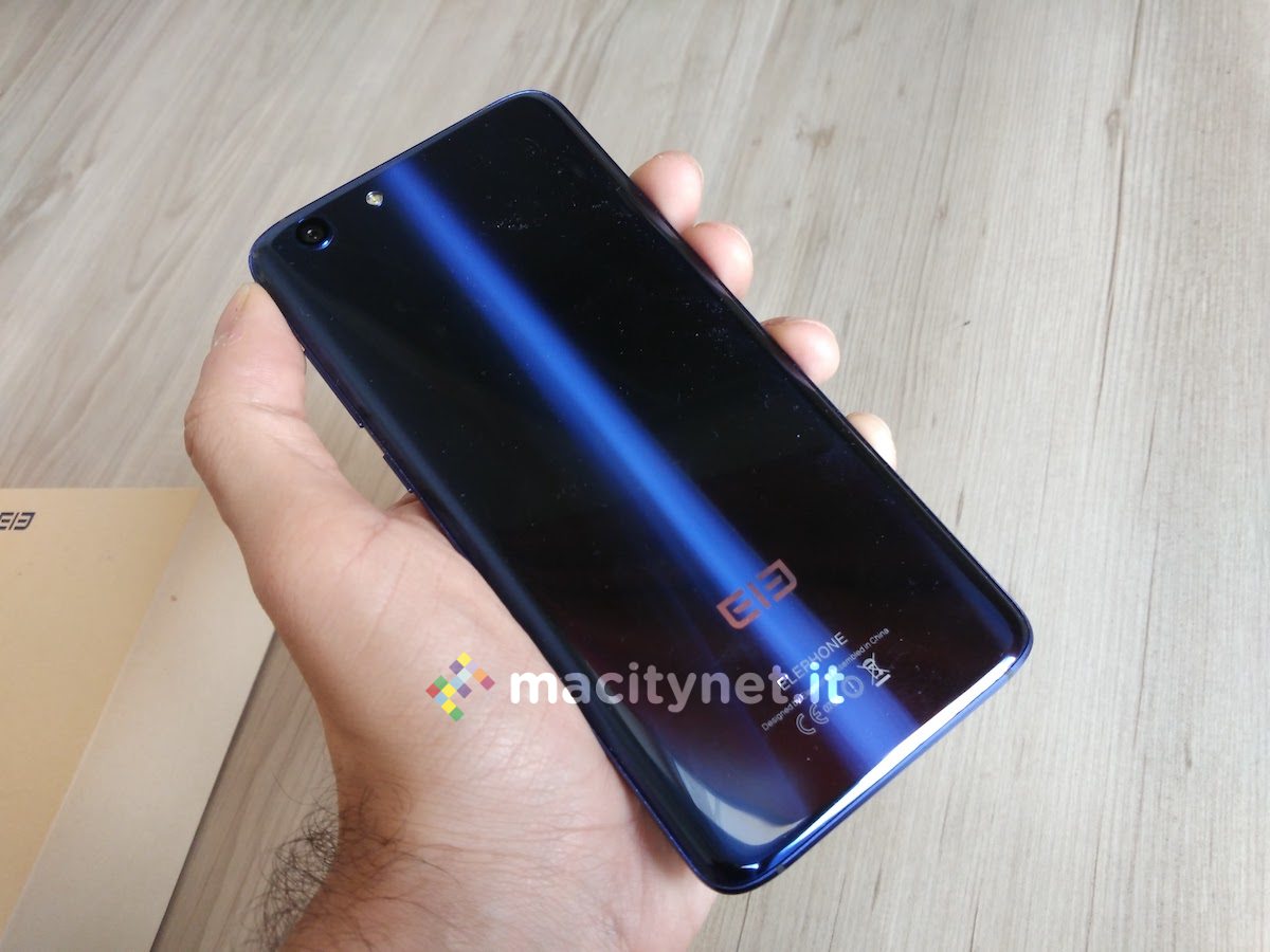 Come già anticipato, Elephone S7 punta molto sull’estetica. In effetti, all’apertura della confezione non la si può non apprezzare. Il terminale è davvero bello, non c’è nulla da dire. Il display dual edge non raggiunge per curvatura quello di Galaxy S7 Edge, ma l’effetto generale è molto accattivante. La colorazione in blu, stile Honor 8, lo aiuta ad apparire come un terminale di fascia alta, sebbene il retro sia in plastica e non in vetro. Ciò nonostante, sulla scocca posteriore si possono apprezzare riflessi e giochi di luce, come accade sul citato terminale Honor. Insomma, esteticamente Elephone S7 è veramente uno smartphone degno di nota, che non può passare inosservato. E’ costruito e assemblato anche molto bene: non scricchiola e in mano si tiene particolarmente bene, grazie alle curve ai bordi della parte anteriore e posteriore.