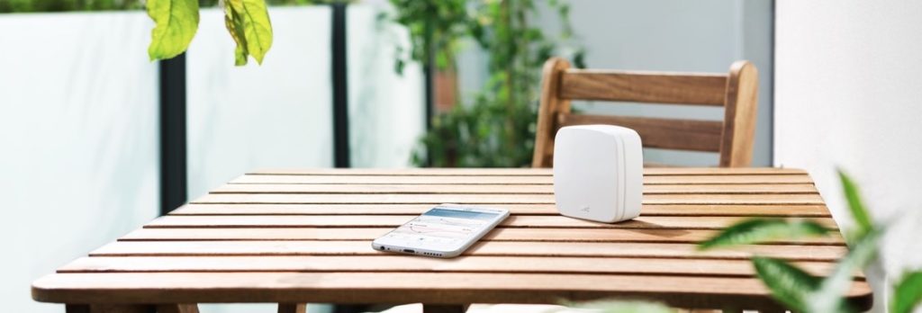 Ovviamente per la lettura “locale” non serve nessun hub domotico o gateway Wi-Fi: la lettura dei dati avviene attraverso la comunicazione bluetooth con il telefono e dobbiamo dire che l’efficienza della trasmissione e’ elevata: il nostro punto di consultazione è a due stanze, due tramezzi + muro esterno dal posizionamento del dispositivo e viene visto facilmente da iPhone.