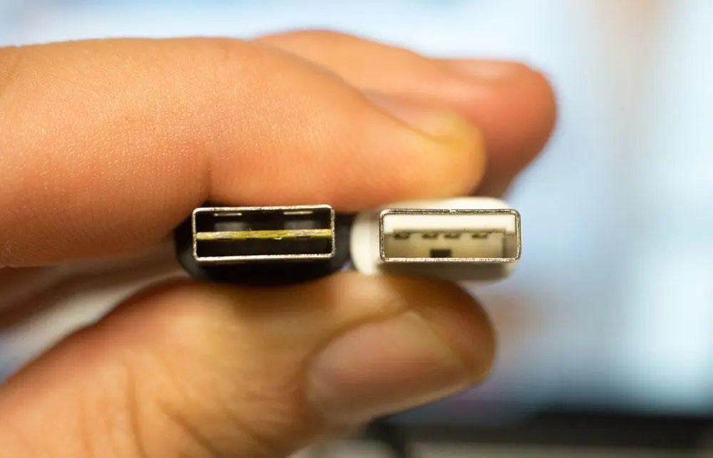 Il cavo Lightning Equinux Tizi Flip a prima vista appare un normale cavo Lightning, diverso da quello di Apple solo per il colore (è nero invece che bianco) e per la lunghezza: uno è di appena dieci centimetri, il secondo di 90 centimetri (quello Apple è di un metro). Ma osservando il connettore USB si nota che internamente è differente: la linguetta in plastica su cui sono collocati i connettori nel normale cavo USB, non è fissata alla base del connettore, ma è al centro, ha i contatti su tutte e due i lati ed è molto più sottile, oltre che leggermente flessibile. Questa scelta, che è più facile da comprendere osservando la fotografia che pubblichiamo qui sotto, che da spiegare, consente al cavo di essere indifferente al verso in cui si infila nella presta USB. In pratica il cavo USB tradizionale deve necessariamente essere infilato in maniera che la linguetta finisca in basso, perchè dentro alla presa c’è una linguetta di accoppiamento nella parte alta, nella spina Equinux, la linguetta è al centro e la linguetta della presa può infilarsi sia sopra che sotto, spingendo leggermente verso il basso la linguetta