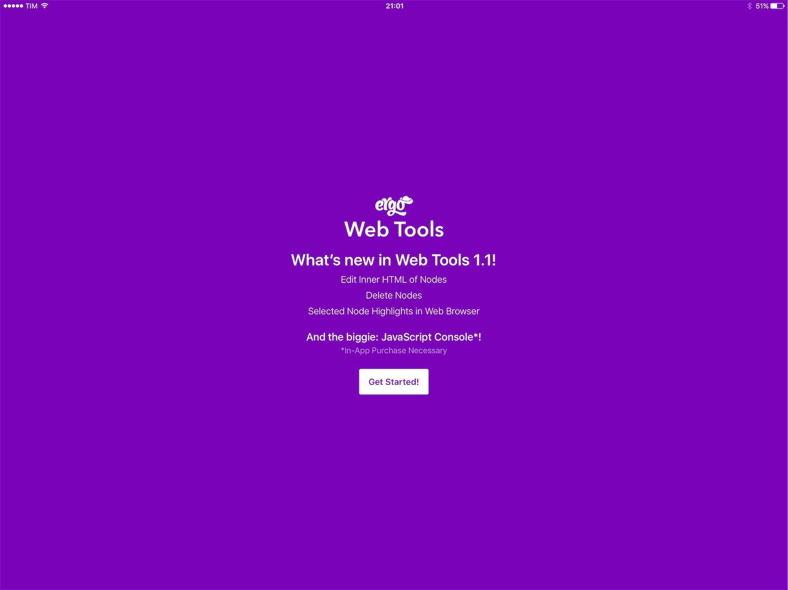 La funzione della console JavaScript è già disponibile come acquisto in-app. Lo strumento complessivo è risultato molto utile sia per vedere come vanno i siti altrui che per fare test sui propri. Con un po’ di manualità si può anche mettere assieme un interessante set di funzionalità di sviluppo web autonome: l’editor Coda (nato su Mac ma disponibile anche su iOS) è dotato anche di un server per dare le pagine a Safari sullo stesso tablet, a condizione che l’app stia girando in background. Anziché Safari si può usare invece Ergo Web Tools e avere lo stesso risultato.
