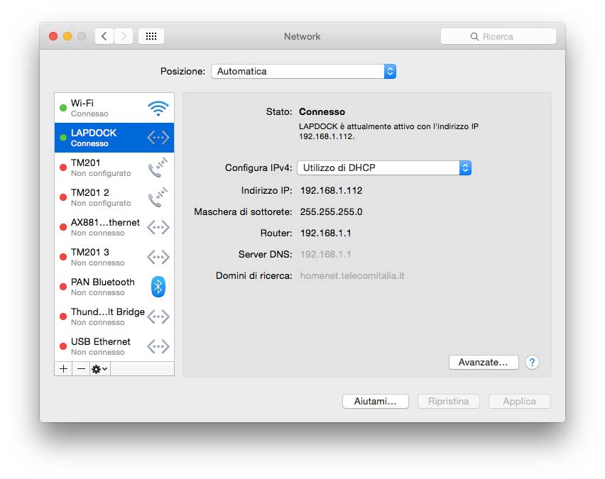 Dopo aver scaricato i driver (l’ultima release nel momento in cui scriviamo un file da 4.2MB), è necessario riavviare il computer (da notare che gli sviluppatori hanno predisposto anche una routine di disinstallazione se per qualche motivo abbiamo bisogno di eliminare i driver). Al riavvio del computer abbiamo collegato un cavo Ethernet che parte dal nostro router alla relativa porta sul dock. Dalle Preferenze di sistema la prima cosa che notiamo è la nuova scheda di rete individuata come “Lapdock”, gestibile alla stregua di una qualsiasi altra connessione di questo tipo (si può modificare l’indirizzo IP, si possono impostare configurazioni con DHCP automatico, attivare funzioni avanzate, ecc.). Collegando un monitor all’uscita DVI del dock (in dotazione c’è anche un comodo adattatore da DVI a VGA, per collegare schermi di vecchia generazione), questo viene subito riconosciuto ed è possibile sfruttarlo sia come estensione (come monitor secondario da disporre a destra o a sinistra della nostra posizione attuale), sia per duplicare il segnalare attuale. Se il monitor supporta questa funzione, è anche possibile ruotare lo schermo di 90° gradi. Anche la porta DVI funziona senza problemi: abbiamo provato a collegare a un MacBook Air 11″ metà 2013 un televisore Samsung sfruttando il dock e un cavo DVI e la risoluzione della TV è stata correttamente riconosciuta. A proposito di risoluzioni, quelle massime supportate sono: 2048×1152 (DVI e VGA) e 2048×1152 o 2560x1440p50 con l’HDMI.