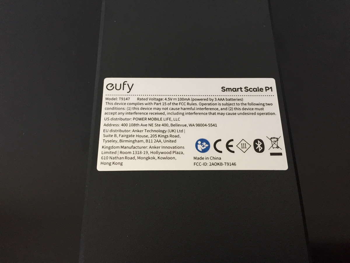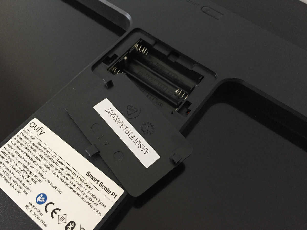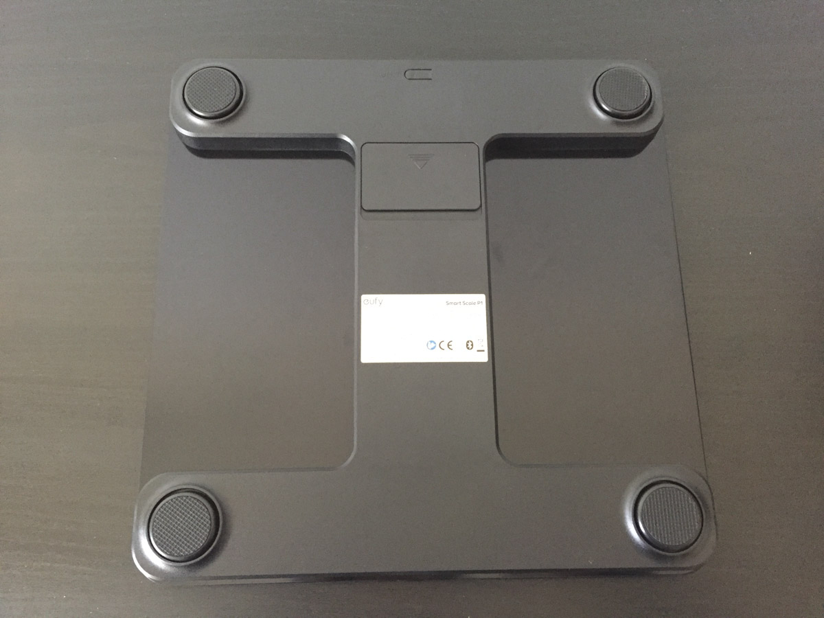 I piedini di eufy Smart Scale P1 sono in gomma e assicurano un’ottima aderenza sul pavimento, il fondo invece è in plastica satinata e al centro trova posto un cassetto per le tre batterie mini-stilo AAA (incluse in confezione) che alimentano la bilancia. Il display è molto ampio, con sfondo nero e numeri in bianco che si leggono con facilità anche di giorno con la luce diretta del sole.