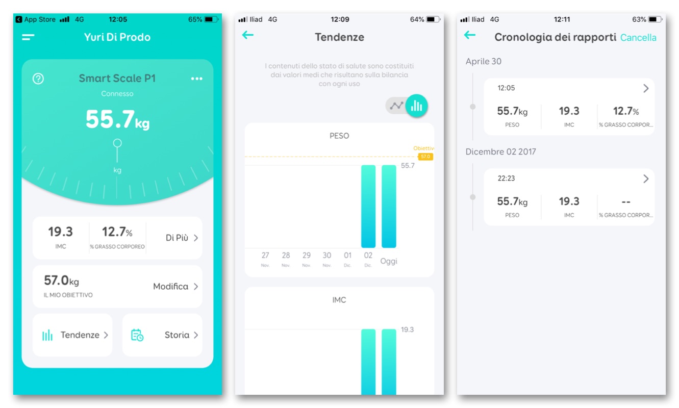 L’interfaccia utente dell’applicazione è davvero minimale ed intuitiva, e mette a portata di mano tutte le informazioni raccolte dalla bilancia all’interno di un pannello di facile consultazione, con tanto di storico di tutte le misurazioni effettuate.