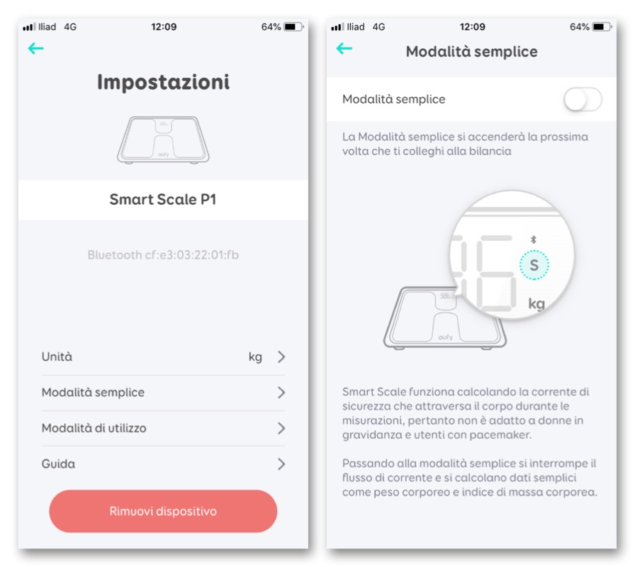 Grazie ad un pulsante posto sul retro è possibile passare dalla lettura in libbre a quella in chilogrammi, rendendola così configurabile ed utilizzabile anche senza abbinarla ad uno smartphone.
