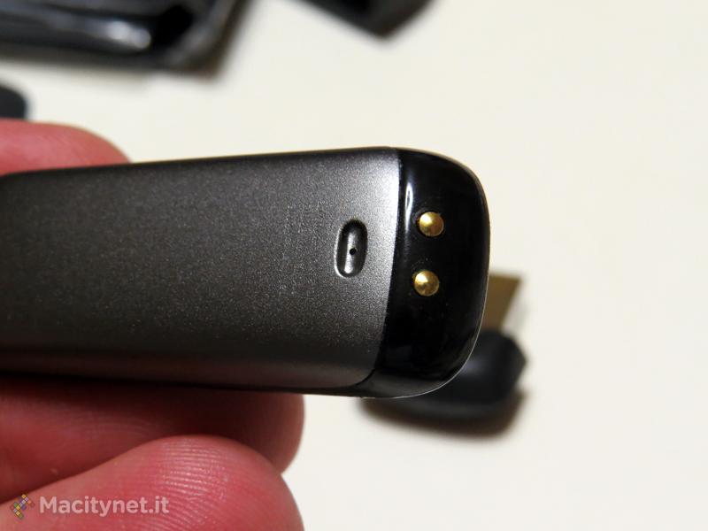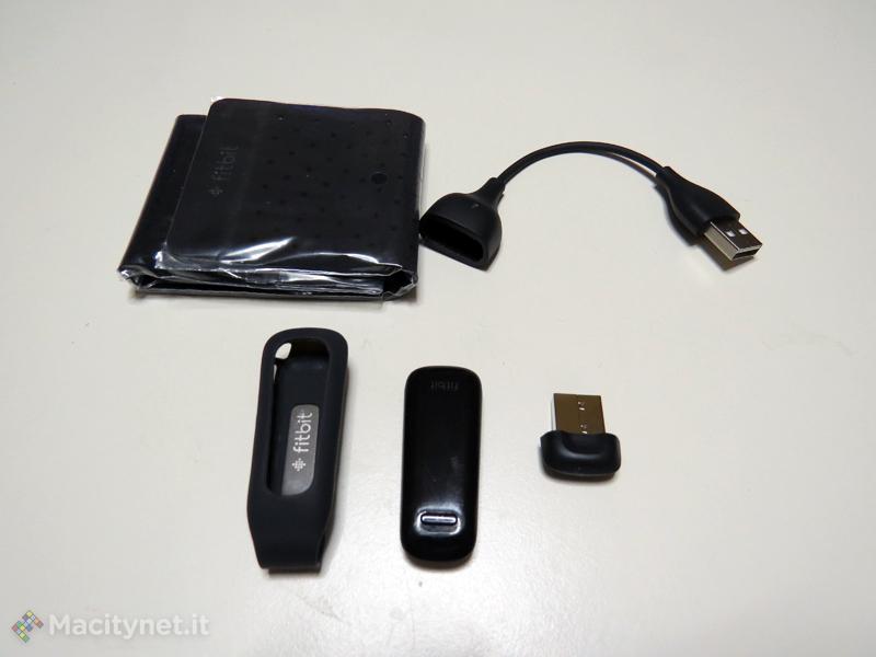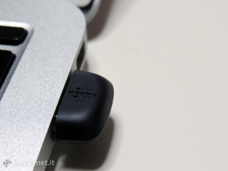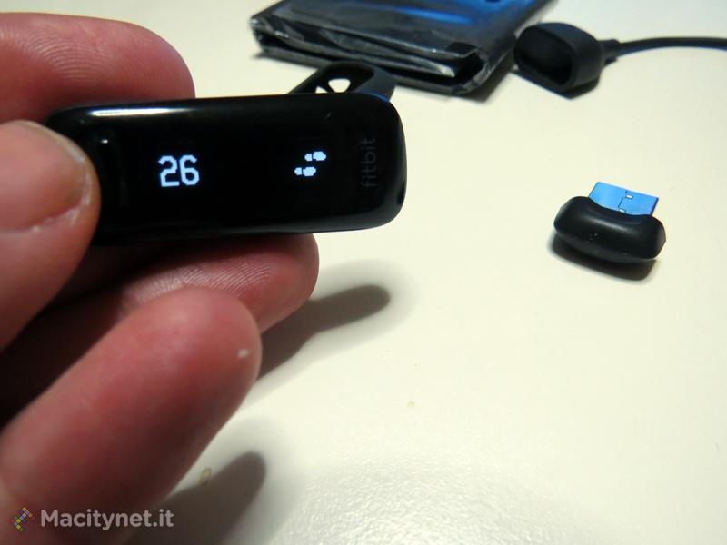 Descrivere com’è fatto il FitBit One è difficile, non perché è troppo complicato, ma perché è troppo semplice. Di fatto si tratta di un piccolo parallelepipedo grande quanto un mignolo, con un dorso in metallo e un display OLED monocromatico che pesa meno di 10 grammi. Un tasto che serve a compiere un ciclo tra le informazioni che offre (passi compiuti, distanza, calorie, piani “scalati” e ora) e che vengono misurate sull’arco delle 24 ore è tutto quel che serve per controllarlo. Nella confezione troviamo anche un cavo per la ricarica della batteria (autonomia tra 5 e 7 giorni, ma in realtà nella nostra prova siamo arrivati a 10 giorni senza necessità di ricarica), un dongle USB per la sincronizzazione con un computer, una clip da cintura e una fascia da braccio per indossare il FitBit One anche quando si dorme. Dentro alla confezione oltre all’hardware necessario per tracciare la nostra attività fisica, abbiamo anche un modulo wireless per la sincronizzazione Bluetooth (versione 4, necessario quindi avere iPhone 4S o superiore o un iPad di terza generazione o un iPod touch di ultima generazione) e per la connessione (con un sistema wireless, purtroppo, proprietario che costringe ad usare il summenzionaato dongle che va ad occupare una porta USB) con un Mac o un PC attraverso il summenzionato dogle. Collegare il FitBit One al PC usando il pannello personale è anche l’unico sistema per modificare le preferenze anche hardware, regolare le sveglie, modificare i livelli di accesso della privacy.