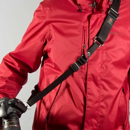 Quando si parla di tracolla Fles si parla essenzialmente di un sistema modulare. Sarebbe sbagliato o riduttivo pensare ad una cinghia o una tracolla, ma di un set completo in cui potremo trovare vari elementi molti dei quali funzionali per sè stessi. Nel nostro caso abbiamo testato il modello ES-A100, completamente nero (sono disponibili anche versioni grigie o “miste”, nero e grigio), completo di kit di trasformazione che permette di variare la tipologia della tracolla: da FL a ES o viceversa. Nonostante tutte e due le soluzioni siano basate sullo stesso principio funzionale (consentono di trasportare la camera senza impegnare le mani e senza ricorrere alle mini tracolle di cui sono dotate anche alcune reflex) offrono peculiarità che le distinguono. La FL ha un solo punto di attacco, è pensata essenzialmente per un trasporto a spalla (anche se si può accorciare per essere messa al collo), con la camera che penzola sul fianco, sempre pronta allo scatto; la ES ha due punti di attacco, in virtù dei quali può essere sia usata in maniera ugualmente ergonomica a spalla che a tracolla. In aggiunta a questo, la ES offre anche la possibilità di essere ridotta a semplice cinturino da polso. Tutte e due le cinghie sono in grado di essere aggiustate in lunghezza, usando sia una fibbia principale, da regolare prima di indossare la Fles, che delle fibbie “rapide” che si manovrano anche durante l’utilizzo, mentre la tracolla è già indossata. Utilizzando una serie di accessori, potremo anche avere un sistema di aggancio e sgancio rapido, senza ricorrere alla piastra di collegamento oppure riutilizzare le cinghie in dotazione alla camera per una postura di trasporto differente.