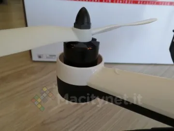 Il drone ha un peso di quasi un chilo e risulta molto solido. Le plastiche bianche sono ben rifinite, potenti invece i motori brushless, in grado di sollevare tranquillamente il drone, anche con gimbal installato, senza nemmeno troppo rumore e fatica. In aria il drone soffre le raffiche di vento molto forti, ma grazie alla modalità di volo controllata dal GPS è possibile volare senza patemi: il quadricottero aggancia velocemente, e in modo automatico, i satelliti e rimane fermo in aria, nella posizione desiderata, senza dover correggere la traiettoria manualmente con gli stick analogici del telecomando.