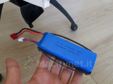 La batteria è forse il punto dolente di questo drone. Il manuale riporta anche 25 minuti di autonomia con una batteria da 5000 mah, ma in dotazione sarà compresa una da 2200 mah, che in modalità GPS, e senza nemmeno il peso di un gimbal con camera, assicura 8 minuti di volo, che possono leggermente variare a seconda della presenza di vento. Per di più, al momento, anche una ricerca in rete non porterà a reperire facilmente batteria da 5000 mAh, salvo effettuare qualche piccola modifica, sconsigliabile ai neofiti. Con una modalità di volo non assistita da satelliti è possibile guadagnare circa un minuto di volo in più, ma non si arriverà a superare i 10 minuti.