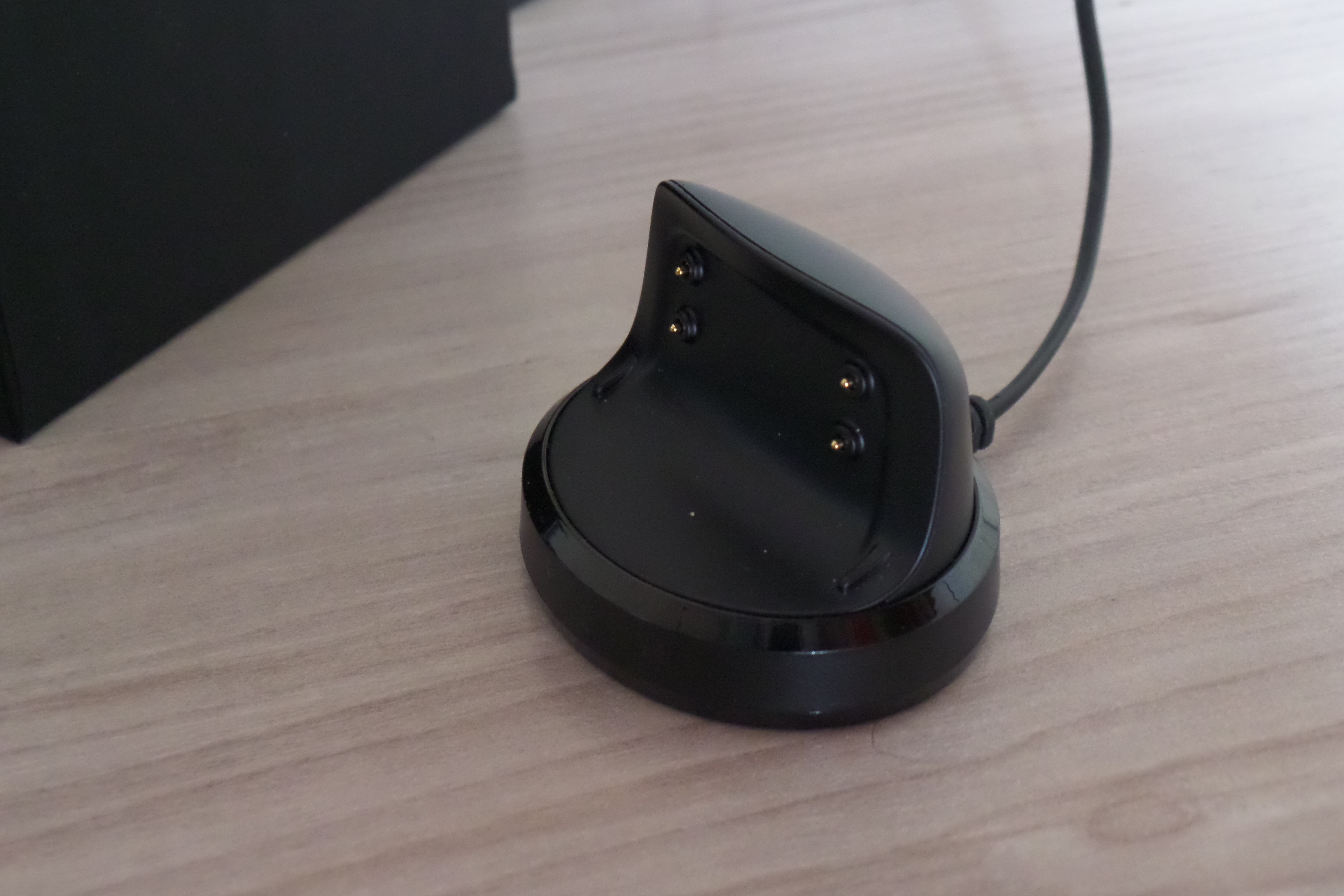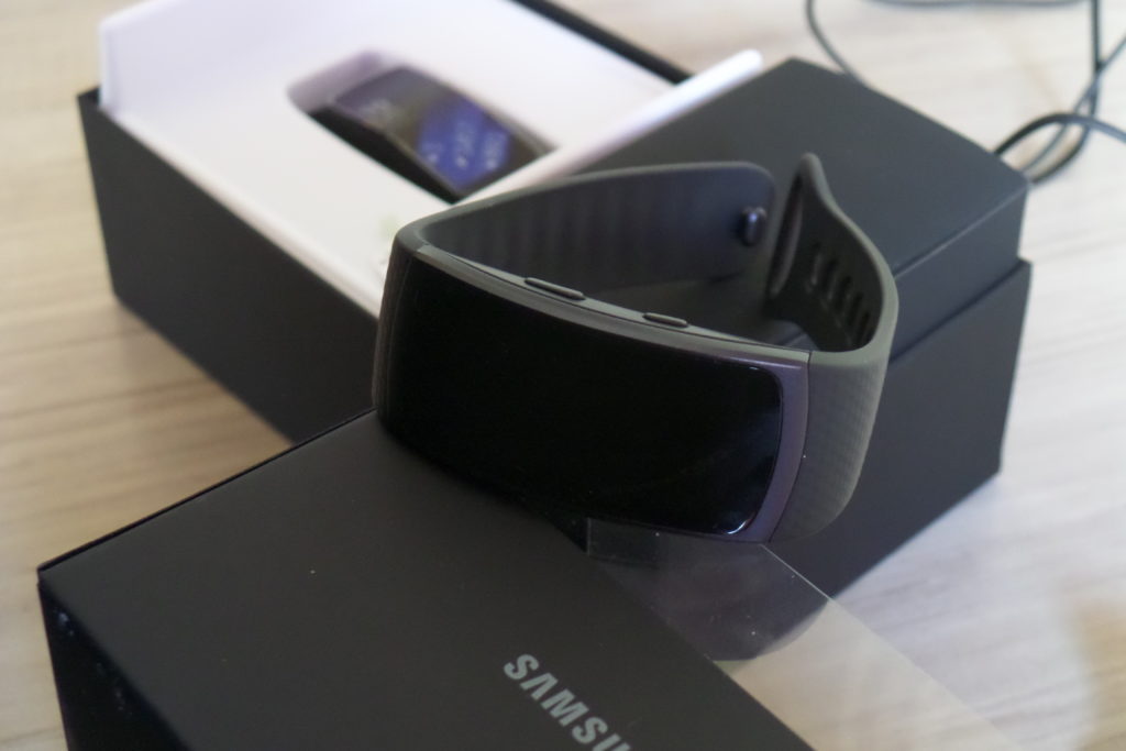 L’apertura della confezione non riserva particolari sorprese; oltre al bracciale e alla manualistica è presente la piccola base di ricarica del bracciale. E’ magnetica, ragion per la quale attirerà in sede la smartband, quale che sia l’orientamento in cui la si inserisce. Il bracciale presenta un cinturino di ottima fattura, morbido e flessibile quanto basta per poterlo indossare comodamente nell’arco di tutta la giornata. Lo abbiamo utilizzato intensamente per diverse settimane, sia durante il fitness, sia nel quotidiano, senza riscontrare alcun segno di usura evidente. Gear Fit 2 si indossa bene anche per via delle dimensioni e del peso, davvero contenuti, pari a 5,1 x 2,4 x 1,2 cm, per 32 grammi. Al polso, insomma, lo si dimentica di avere, anche per via dello schermo ricurvo, che rappresenta certamente la caratteristica di maggior pregio.